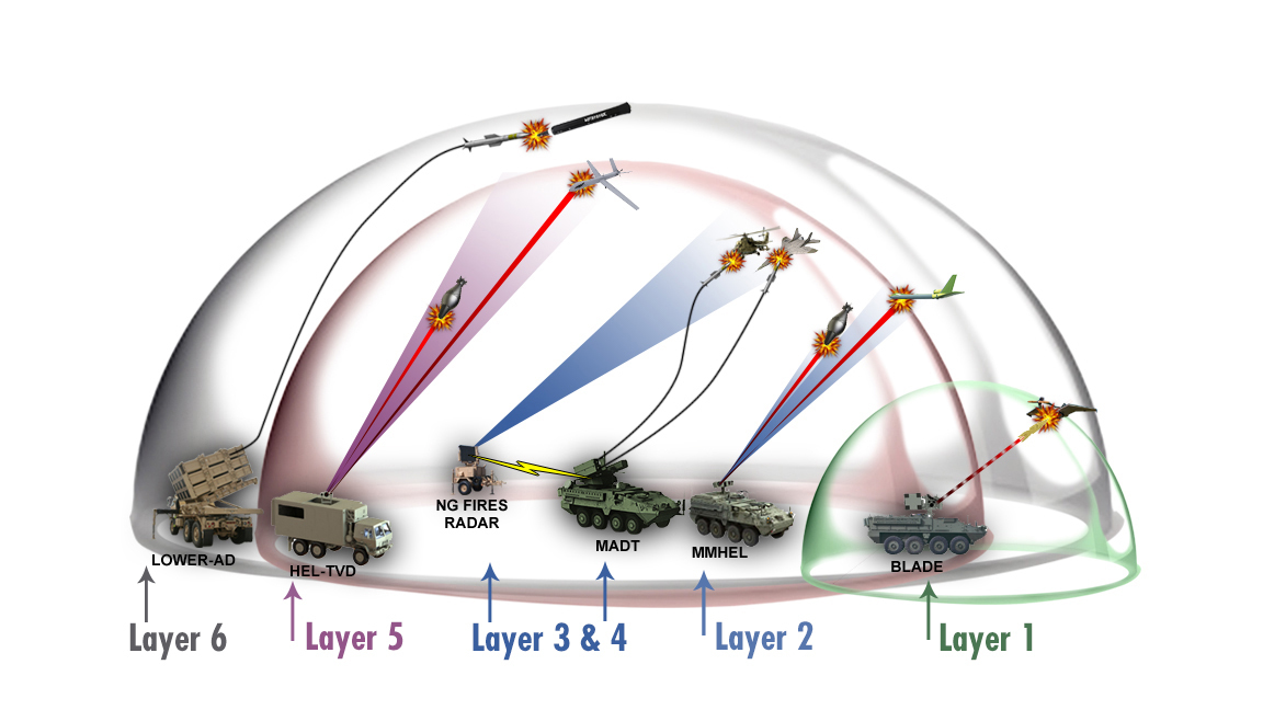 아이언 빔은 이스라엘의 기존 다층 방공망(애로우 2, 애로우 3, 다비드 슬링, 아이언 돔)을 보완하는 다섯 번째 요소가 될 수 있으며[34][37], 필요에 따라 단독 시스템으로도 운용 가능하다.[35] 2014년 이후 지향성 에너지 무기가 이스라엘 방공 시스템의 취약점을 보완할 수 있다는 평가가 제기되어 왔다.