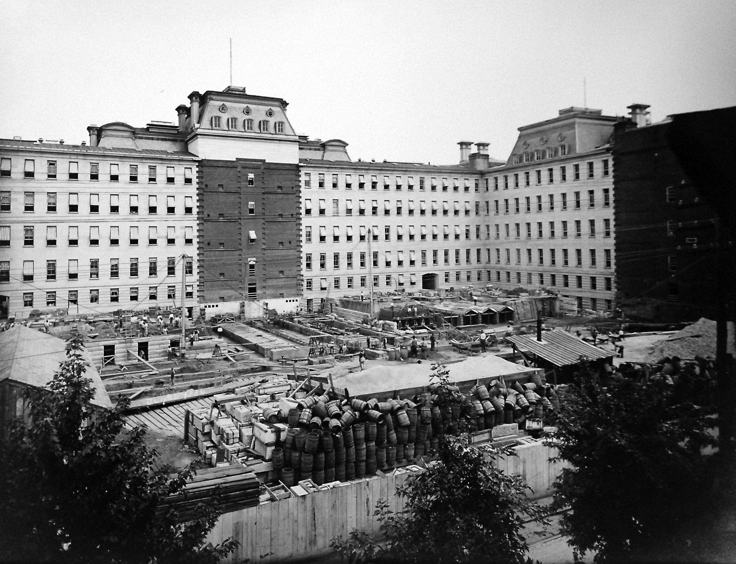 백악관 옆 워싱턴 조키 클럽 부지에 1799년에서 1820년 사이에 최초의 행정 사무실이 건설되었다.[5] 1869년, 남북 전쟁 이후 의회는 새로운 국무부 청사 부지를 선정하고, 전쟁부 및 해군부의 입주 가능성을 포함한 계획 및 비용 추정치를 제출하기 위해 위원회를 임명했다.[5]