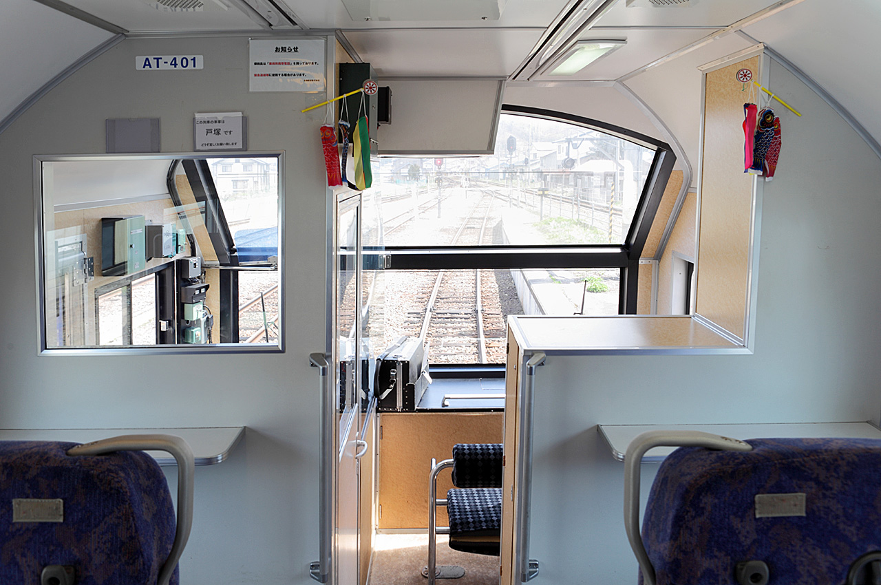 오자토로 전망 열차는 트롤리 차량과 전망 차량을 연결하여 운행하는 관광 열차이다.