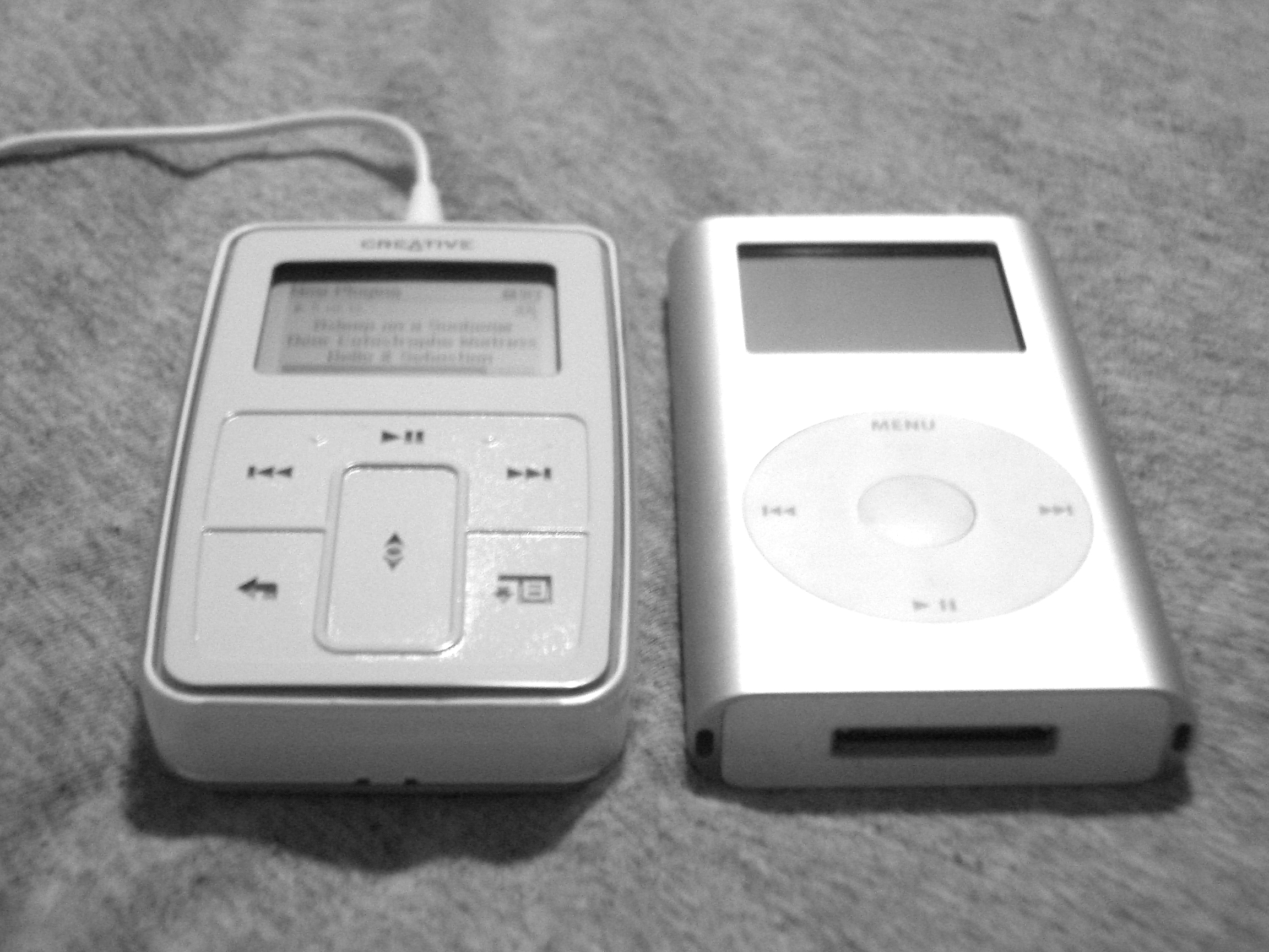 이는 크리에이티브 테크놀로지가 보유한 "ZEN 특허"[165]라고 불리는 사용자 인터페이스 관련 특허에 해당했기 때문에, 동사로부터 소송을 제기당해 애플은 크리에이티브 테크놀로지에 1억 달러의 합의금을 지불하고 합의했다.[166] 다른 회사 제품 플레이어에도 유사한 사용자 인터페이스를 가진 것이 있다.