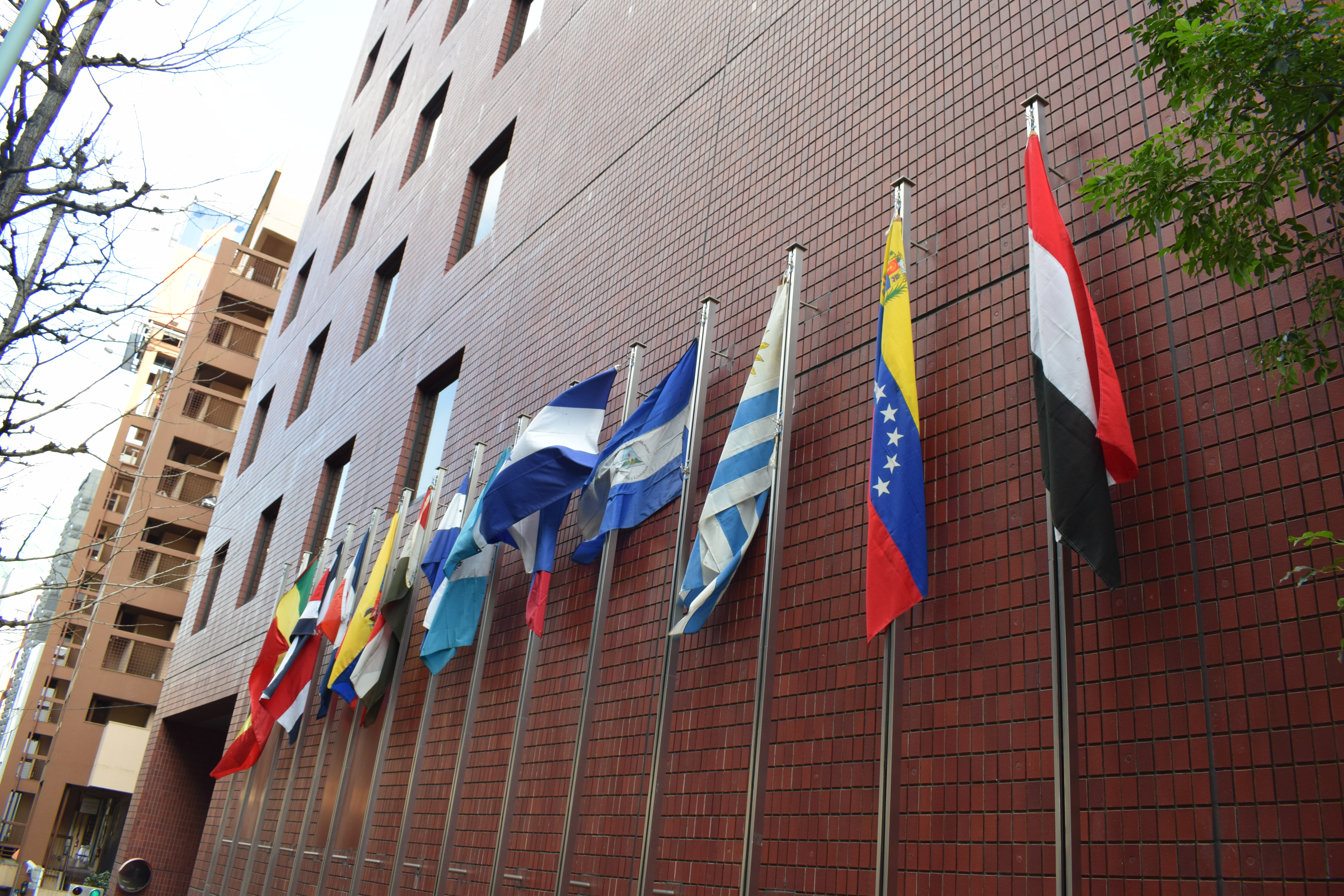니시아자부에 위치한 흥와니시아자부빌딩(구 제38흥와빌딩)에는 과거 여러 대사관이 입주해 있었으나, 2019년 3월 시점 이후 다수가 이전하였다.