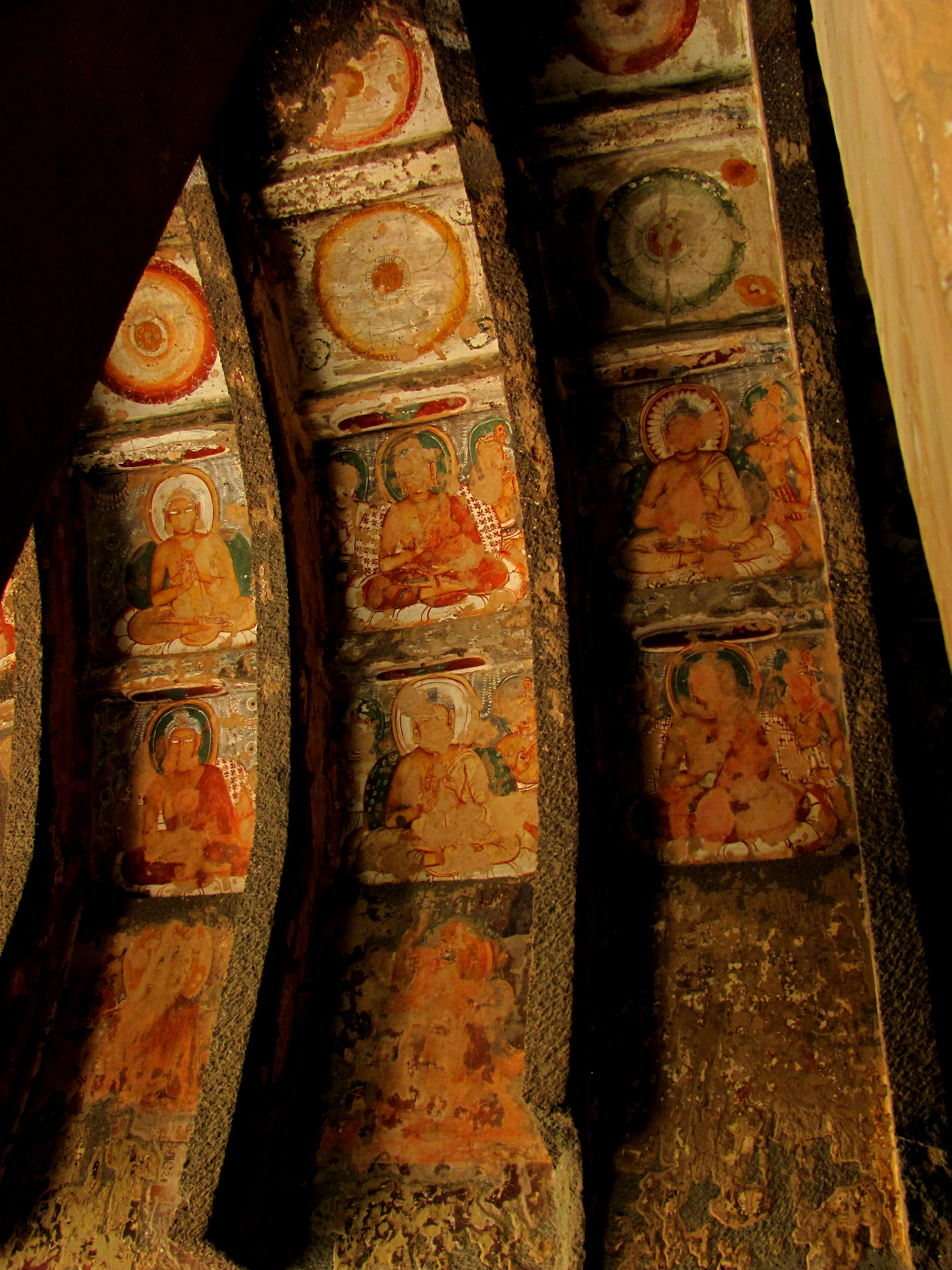 일반적으로 후기 석굴들은 다른 곳에서 발굴 작업이 계속되는 동안 완성된 지역에 그려졌다.