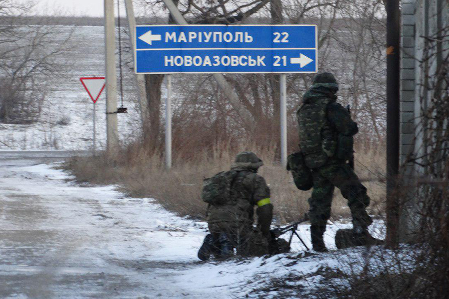 2015년 1월 24일, 마리우폴은 분리주의자들의 무차별 로켓 공격을 받아 31명이 사망하고 108명이 부상당했다.[65] 같은 해 1월 28일, 마리우폴 동부 검문소 포격으로 아조프 대원 2명이 사망했다.[66] 이 두 공격은 모두 마리우폴에서 동쪽으로 11km 떨어진 시로키네 마을 인근 지역에서 감행되었으며, 이 지역에서 분리주의자 병력의 상당한 이동이 감지되면서 마리우폴에 대한 3차 공격 우려를 불러일으켰다.2015년 2월, 아조프 연대는 시로키네에서 분리주의자에 대한 기습 공세를 주도했다. 이 공격의 목적은 마리우폴에 대한 추가 폭격을 막고 분리주의자 병력을 노보아조프스크로 몰아내기 위한 완충 지대를 만드는 것이었다.[67][68] 아조프 연대의 공격은 우크라이나군,[69] 공수 부대,[70] 국민방위군의 돈바스 대대, 독립 자원 대대 우크라이나 자원군,[71] 체첸 무슬림 셰이크 만수르 대대에 의해 강화되었다.[72]