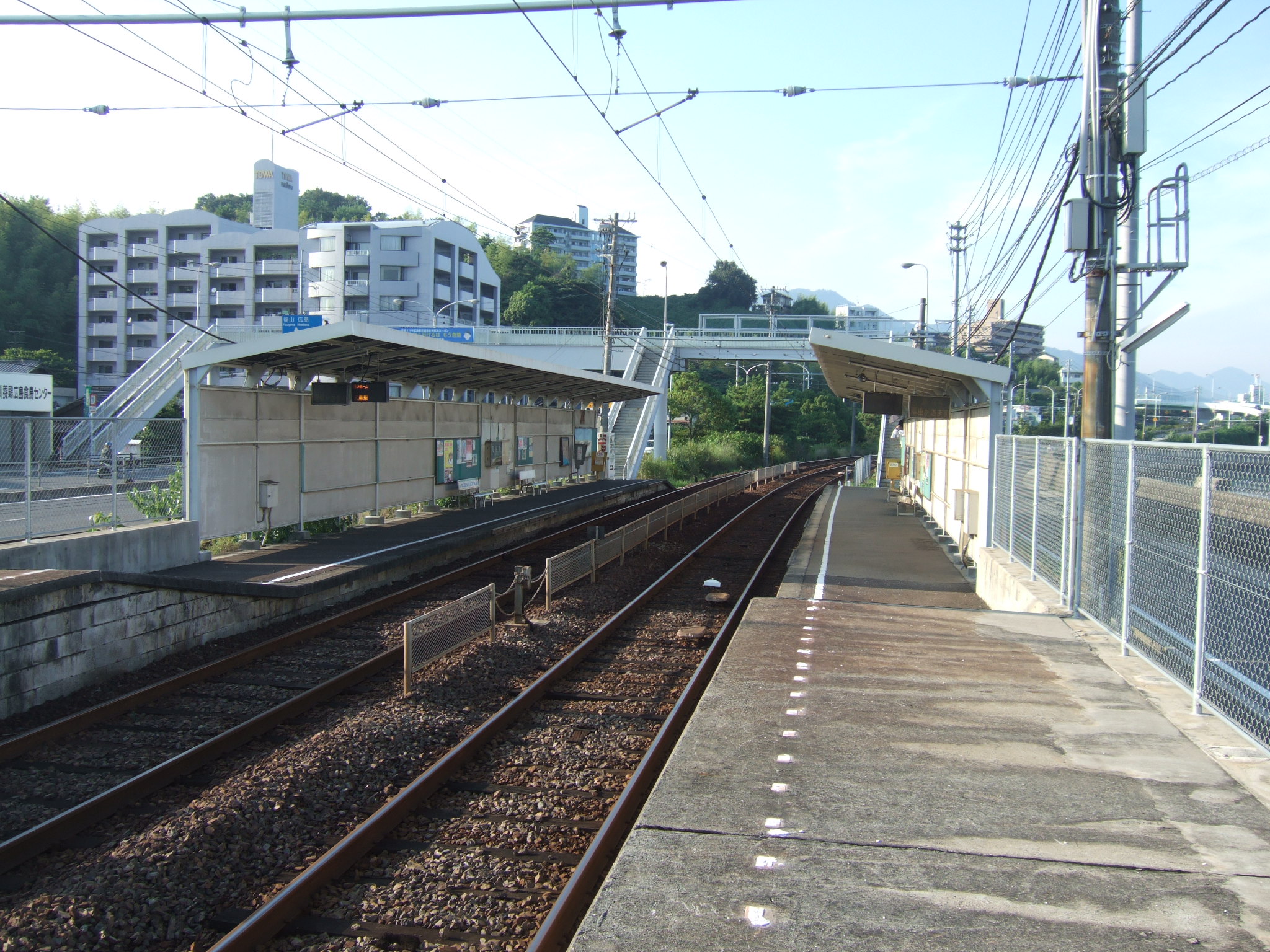 역 바로 동쪽에는 세토 내해가 인접해 있다. 역 서쪽 바로 옆을 달리는 국도 제2호선을 지나 산 쪽으로 가면 아지나다이 뉴타운이라는 광대한 주택가가 펼쳐진다.