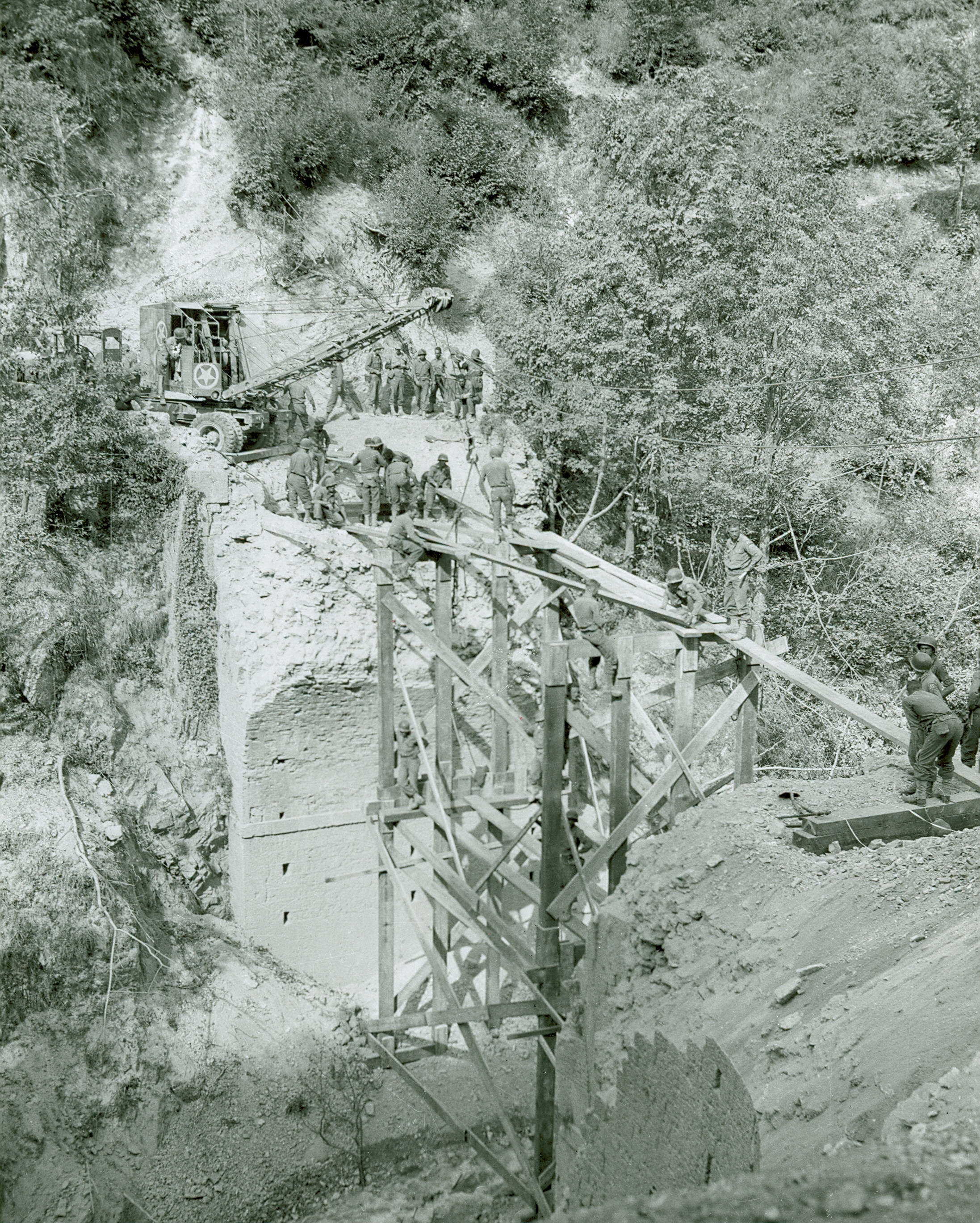 제2차 세계 대전 중이던 1943년 9월, 영국-미국 연합군은 아체르노를 처음으로 폭격하여 주교 궁전 일부와 산타 마리아 델리 안젤리 교회를 파괴하고 수많은 건물에 피해를 입혔다.[3] 같은 해 9월 16일, 독일군 병사 5명이 카논 카르미네 산소네의 정원에 침입하여 나무에서 과일을 따던 중 사제의 정확한 사격으로 사망했다.[3] 이에 독일군은 사제의 집을 포격했고, 사제는 탈출했으나 그의 조카는 목숨을 잃었다.[3]