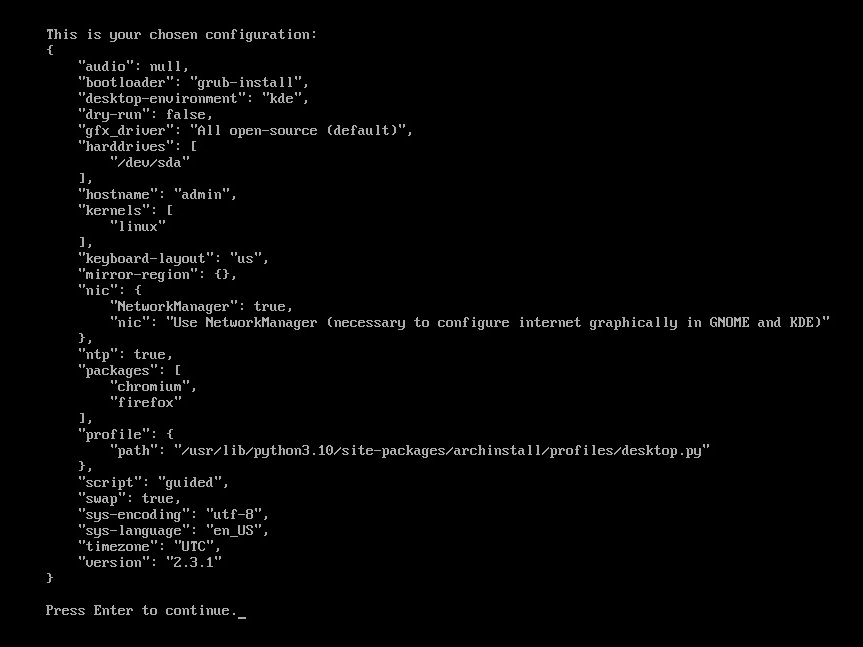 2021년 4월, 아치 리눅스 설치 이미지에 기본 설치 스크립트가 포함되었다.[31]