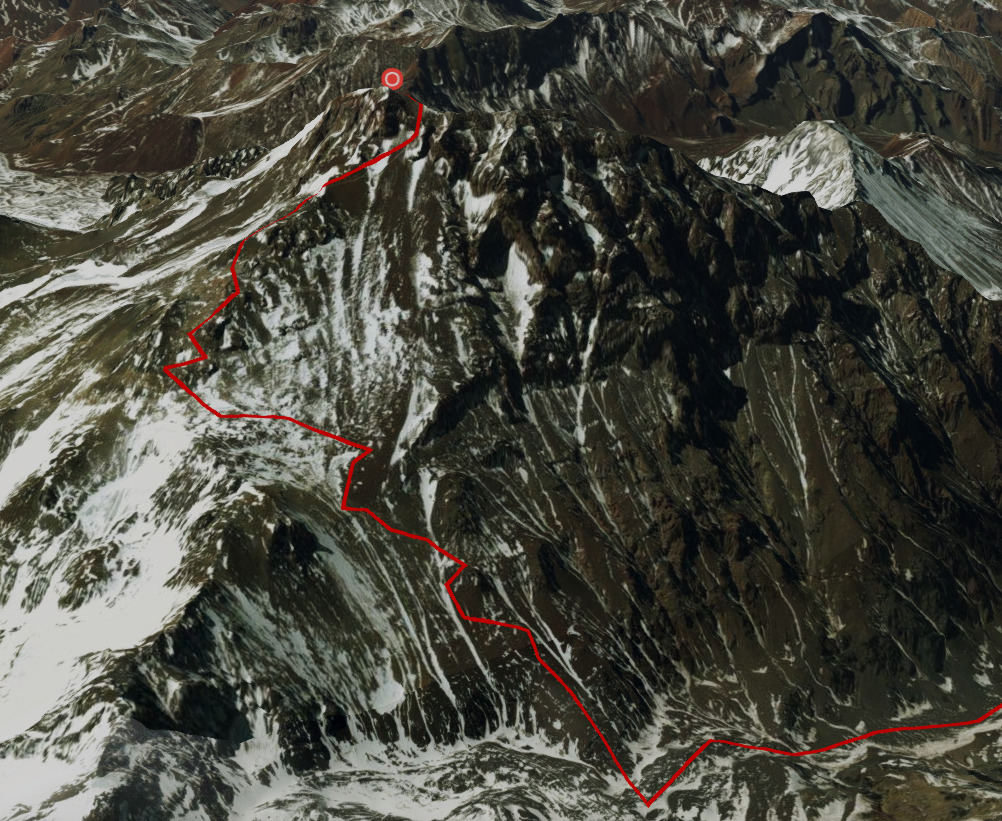 캄포 콜레라 | 6000m | 캄포 베를린 근처 북쪽 능선에 위치한 더 넓지만 노출이 약간 더 심한 캠프로, 인기가 높아지고 있다. 2011년 1월에는 비상 상황에 대비하여 캄포 콜레라에 쉼터가 개설되었다.[16] 이 쉼터는 2009년 1월 정상 등정 직후 사망한 이탈리아 등반가 엘레나 세닌(Elena Senin)의 이름을 따서 명명되었으며, 그녀의 가족이 쉼터를 기증했다.[17] |