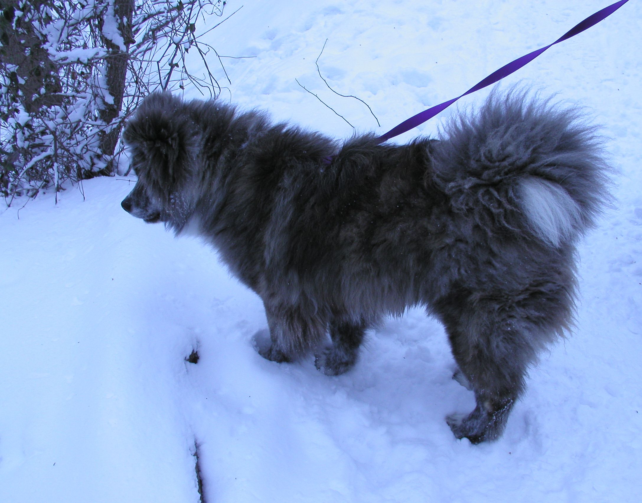 | 신체적 특징 | 추운 날씨에 강하며, 굵은 뼈와 곰 같은 머리, 삼각형 귀와 눈, 이중 털, 고양이 같은 발, 굽은 꼬리를 가짐.[45][46][47][48] |