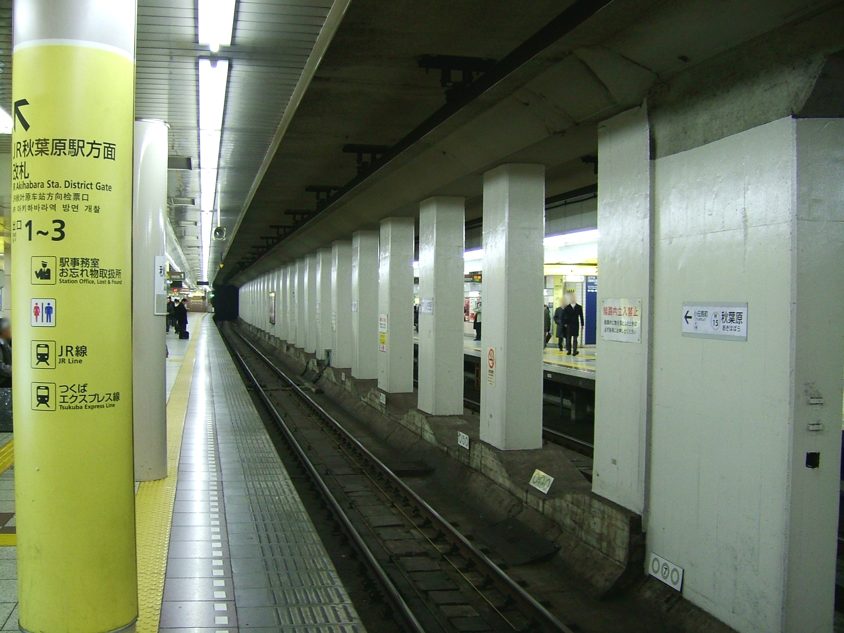 아키하바라 지역 개발 계획에 따라 폭 25미터의 도로 바로 아래 지하 4층 구조로 건설되었다.[28] 역무 관리소가 있는 역으로, 당역에서 민아미주역 (南千住駅) 구간을 관리하고 있다. A1부터 A3까지 3개의 출구가 있으며, A1·A2 출구는 JR 중앙 개찰구와 연결되어 있다. A3 출입구는 요도바시 아키바 입구와 일체화되어 있고, A2 출입구는 교통 광장에 단독으로 설치되어 있다.[28]