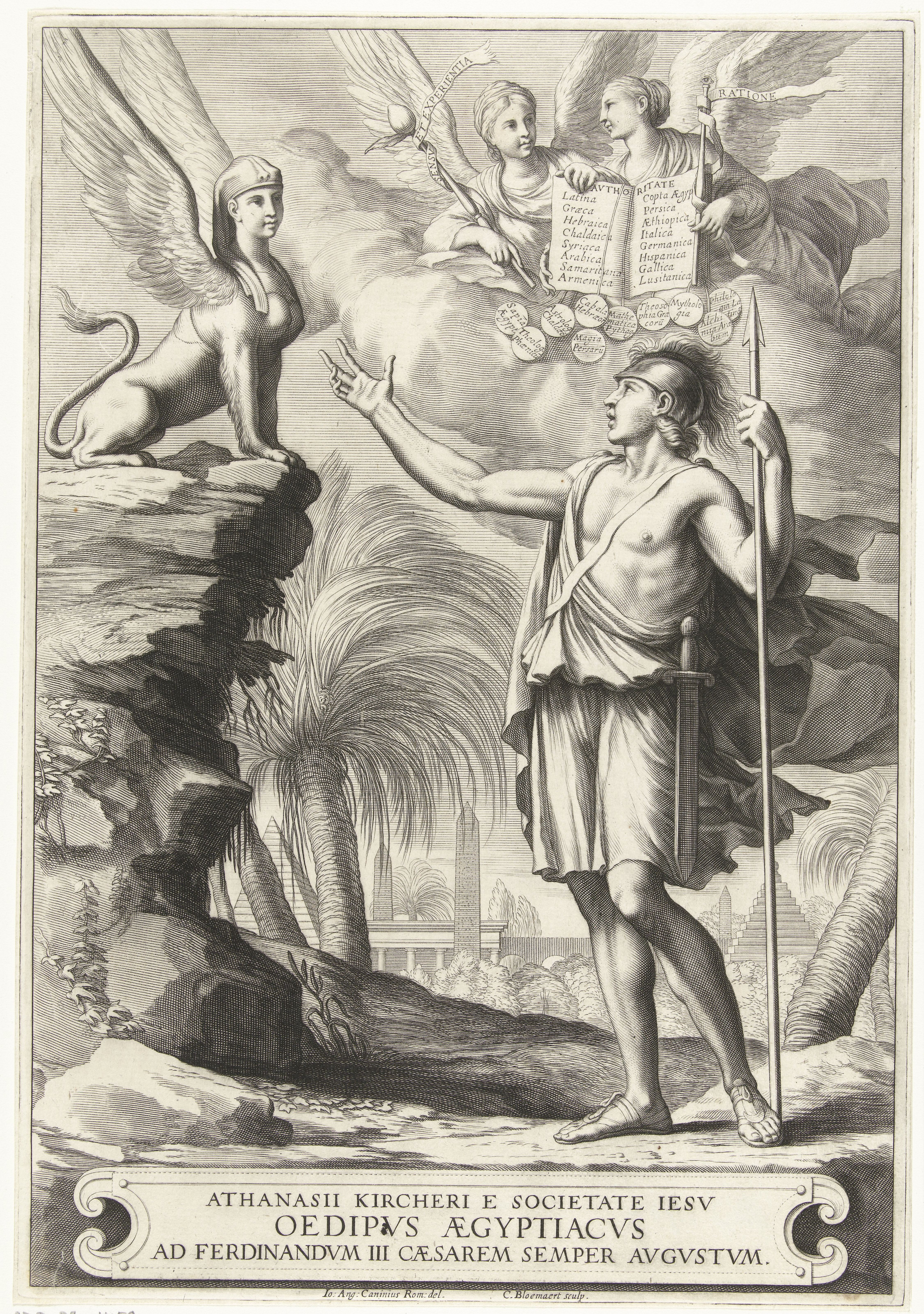 1650년에서 1654년 사이에 키르허는 콥트 연구와 관련하여 상형 문자의 "번역" 4권을 출판했다.[14] 그러나 스티븐 프리머에 따르면, "그것들 중 어느 것도 원본 텍스트에 전혀 맞지 않았다".[14] ''오이디푸스 이집티아쿠스''에서 키르허는 ''Hieroglyphica''의 영향을 받아 고대 이집트어가 아담과 이브가 사용한 언어였고, 헤르메스 트리스메기스투스가 모세였으며, 상형 문자는 "단어로 번역할 수 없고, 표, 문자 및 그림으로만 표현되는" 오컬트 상징이라고 주장했다. 이것은 그가 단순한 상형 문자 텍스트 ''ḏd Wsr'' ("오시리스가 말한다")를 "티폰의 배신은 이시스의 왕좌에서 끝나고, 자연의 수분은 아누비스의 경계에 의해 보호된다"로 번역하게 했다.[16]