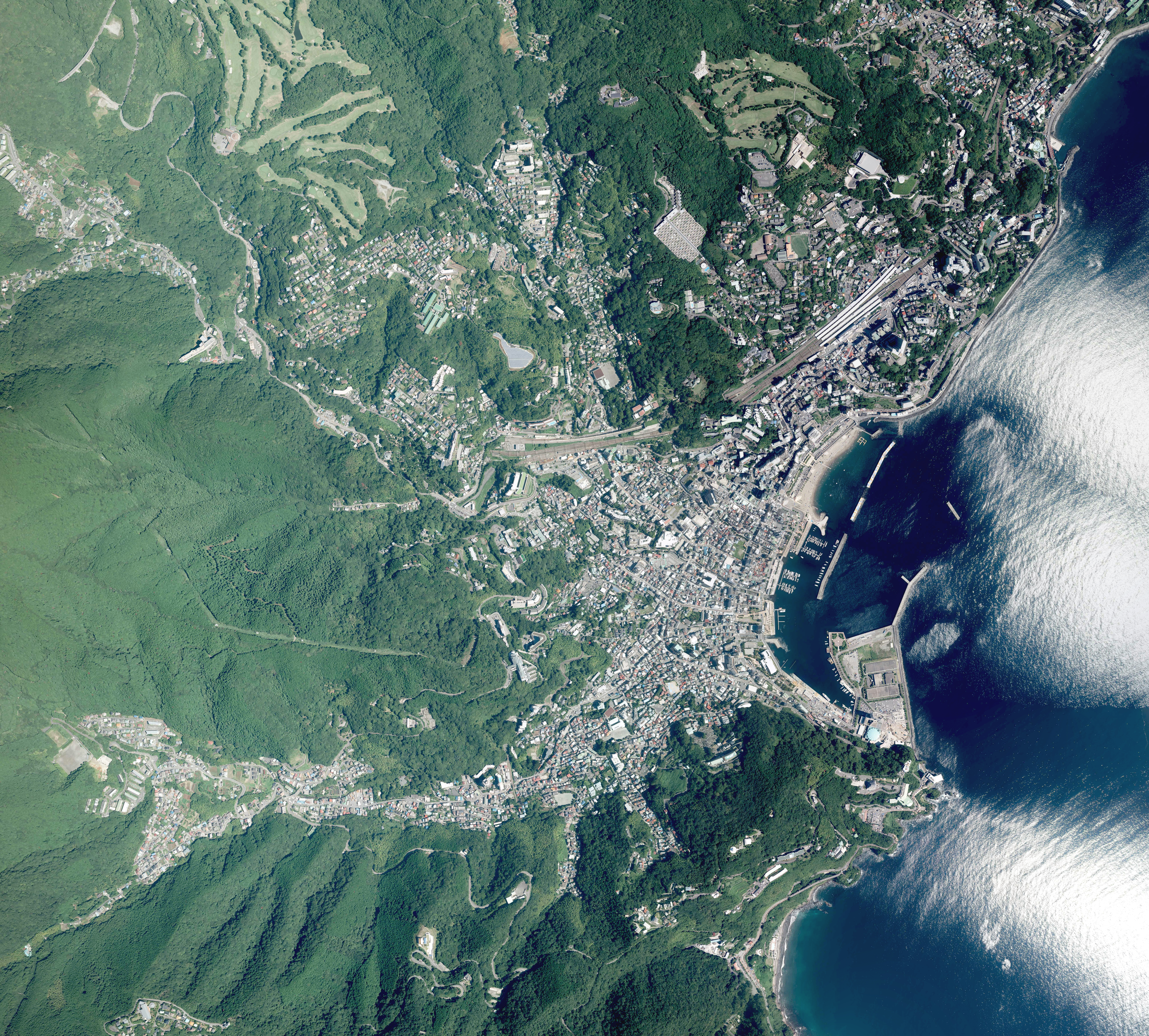2017년 8월 9일 촬영한 9장을 합성하여 제작. 국토교통성 국토지리원 지도・항공사진 열람 서비스의 항공 사진을 바탕으로 제작.]]