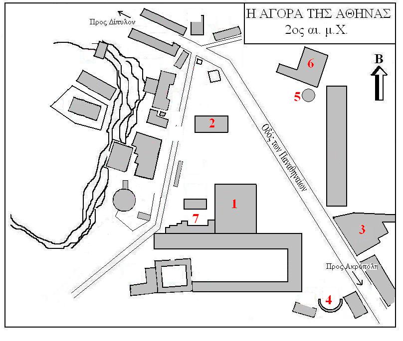 • 아탈로스의 스토아 ''(지도 3과 5 사이의 길쭉한 건물)''