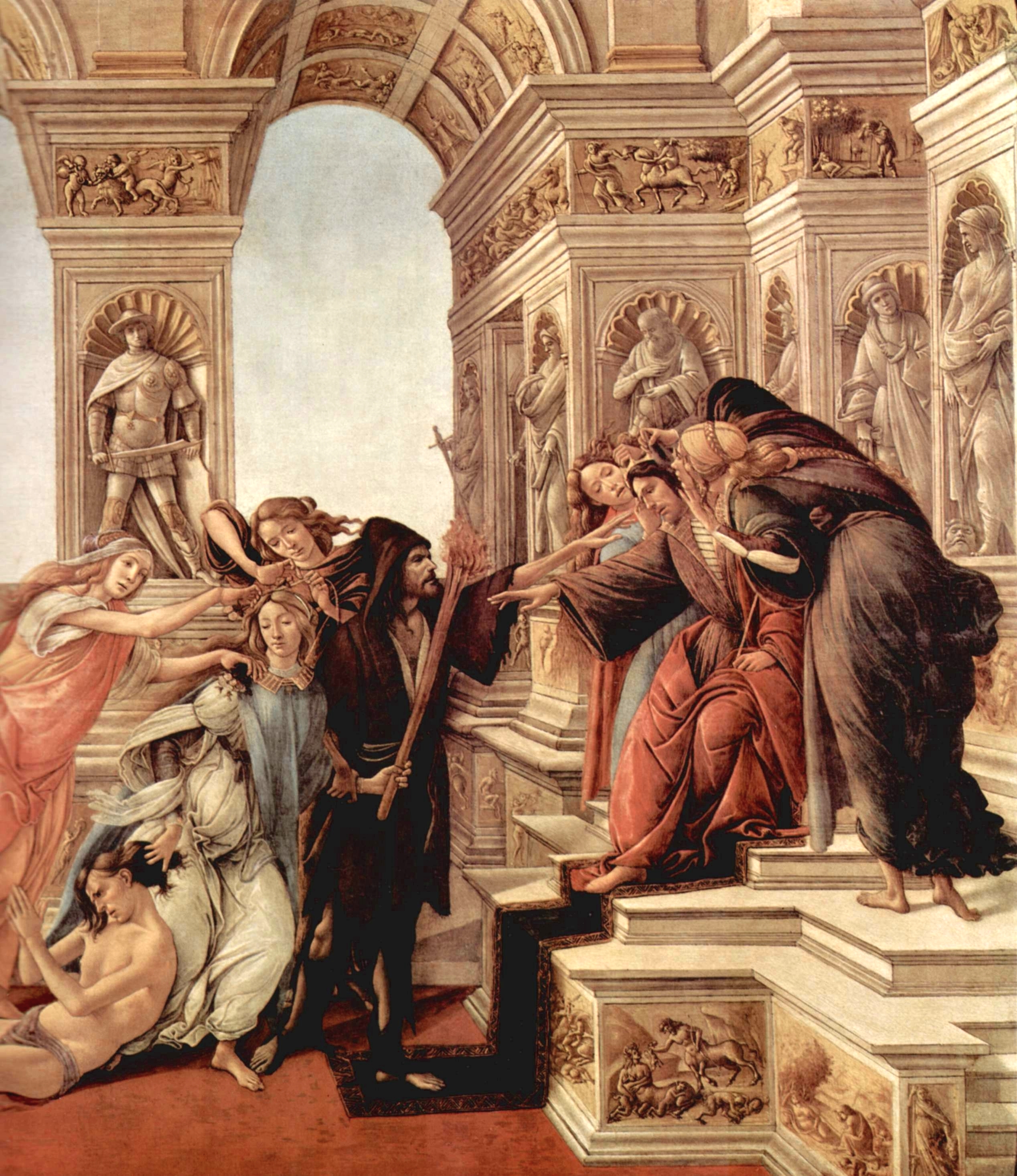 - 거대한 풍자화 "중상모략": 보티첼리의 『아펠레스의 비방』에 영감을 주었다.