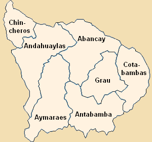 아푸리막 주는 7개의 주(''provincias'')와 80개의 구역(''distritos'')으로 구성된다. 각 주는 다음과 같다.