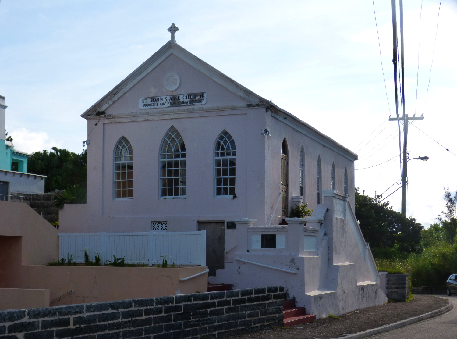 1869년 가을, 세인트 조지의 벤자민 버찰, 데본셔의 윌리엄 B. 제닝스, 서머셋의 찰스 로치 레터레이, 이 세 명의 선견지명이 있는 기독교인들은 아프리카 감리교를 버뮤다로 가져오기 위한 움직임을 시작했다.[23] 제국 정부가 AME 교회가 영국에서 운영할 수 있다고 판결했기 때문에, 버뮤다 최초의 AME 교회는 1885년 해밀턴 교구의 해링턴 사운드 해안에 세워졌으며 세인트 존 아프리카 감리교 감독교회라고 불렸다.[24]