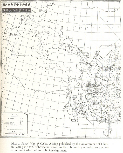 1917년부터 1933년까지 북경의 중국 정부가 발행한 ''중국 우편 지도''에는 아크사이친의 경계선이 쿤룬 산맥을 따라 이어지는 존슨 라인으로 표시되었다.[27] 1925년에 발행된 ''북경대학 지도'' 또한 아크사이친을 인도에 포함시켰다. 1940~1941년, 영국 관리들은 소련 관리들이 신장의 군벌 성세재를 위해 아크사이친을 측량하는 것을 알게 되자, 다시 존슨 라인을 옹호했다. 이 시점까지 영국은 아크사이친에 대한 전초 기지를 건설하거나 통제권을 행사하려는 시도를 전혀 하지 않았고, 이 문제는 중국 또는 티베트 정부와 논의된 적도 없었으며, 인도의 독립 당시에도 경계선은 미확정 상태로 남아 있었다.[25][30]