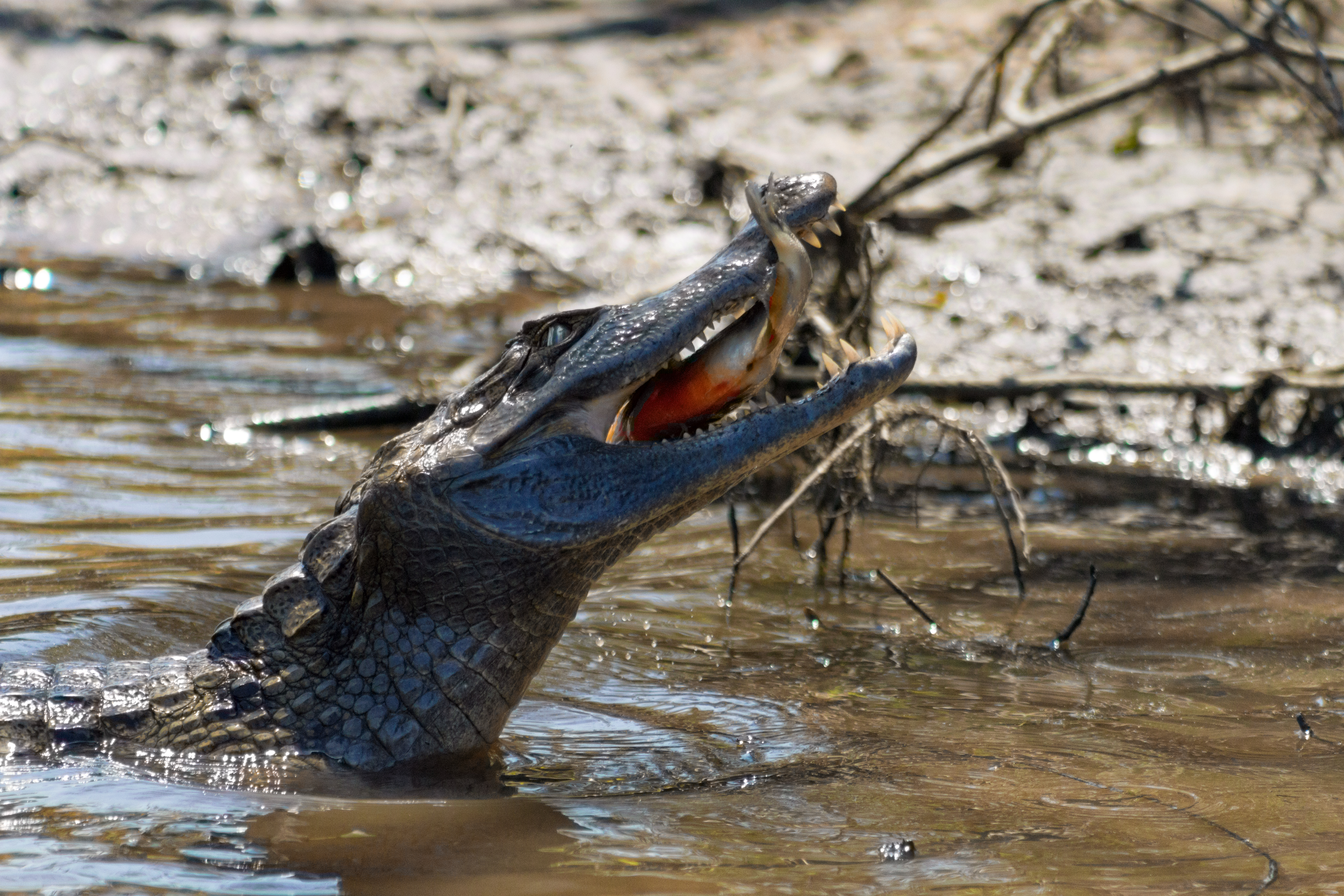 전반적으로 이 종의 먹이에서 가장 흔한 동물은 게, 물고기, 포유류, 달팽이이다.[102] 이 외에도 양서류, 거미류, 새, 다지류, 파충류(도마뱀, 뱀, 거북)와 작은 포유류도 먹는다.[101][103] 나이가 든 동물들은 더 큰 포유류(예: 야생 멧돼지)를 사냥할 수 있으며, 이러한 조건에서 식인 풍습이 보고되기도 한다.[104]