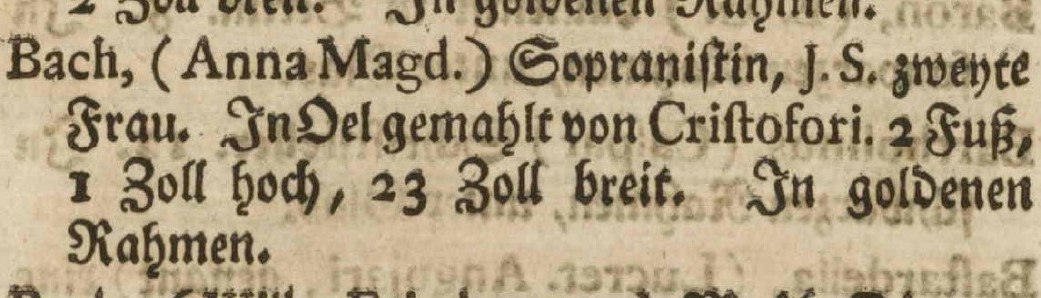 요한 제바스티안 바흐가 1750년 7월 28일에 사망한 이후, 안나 막달레나 바흐는 어려움에 직면했다. 바흐가 미성년 자녀들을 남기고 사망했기 때문에, 그의 아내를 유일한 상속인으로 지정하는 유언은 효력이 없었다. 라이프치히 대학교의 집행 위원회가 바흐 가족의 상속분을 보장했고, 안나 막달레나는 이 지분의 관리를 맡았다. 유산 분배 과정에서 그녀는 여동생의 빚을 갚고, 다른 상속인에게 상당한 금액을 지불해야 했다.