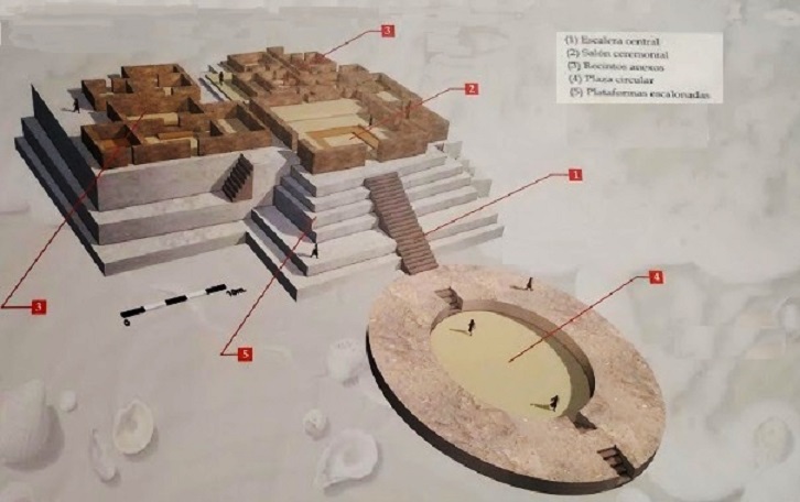 페루 북부 해안에는 와카 프리에타 촌락 유적과 알토 사라베리, 중앙 해안의 카스마 계곡에는 와이누나, 중앙 해안 지대에는 아스페로, 리마 북쪽에는 엘 파라이소와 같은 신전 유적이 건설되었다. 엘 파라이소는 U자형 건물 배치를 보이며, 한 변의 길이가 400m에 달한다. 한편, 산간 지역에서는 소형 신전들이 세워졌다. 기원전 3000년경 북부 고지 산타강 상류에는 라 가르가다 신전이, 기원전 2500년경에는 코토시 유적(페루 와누코 현)에 9m 크기의 "교차하는 손의 신전"이 건설되었다. 이 신전은 교차하는 손을 모티브로 하였다.[5]