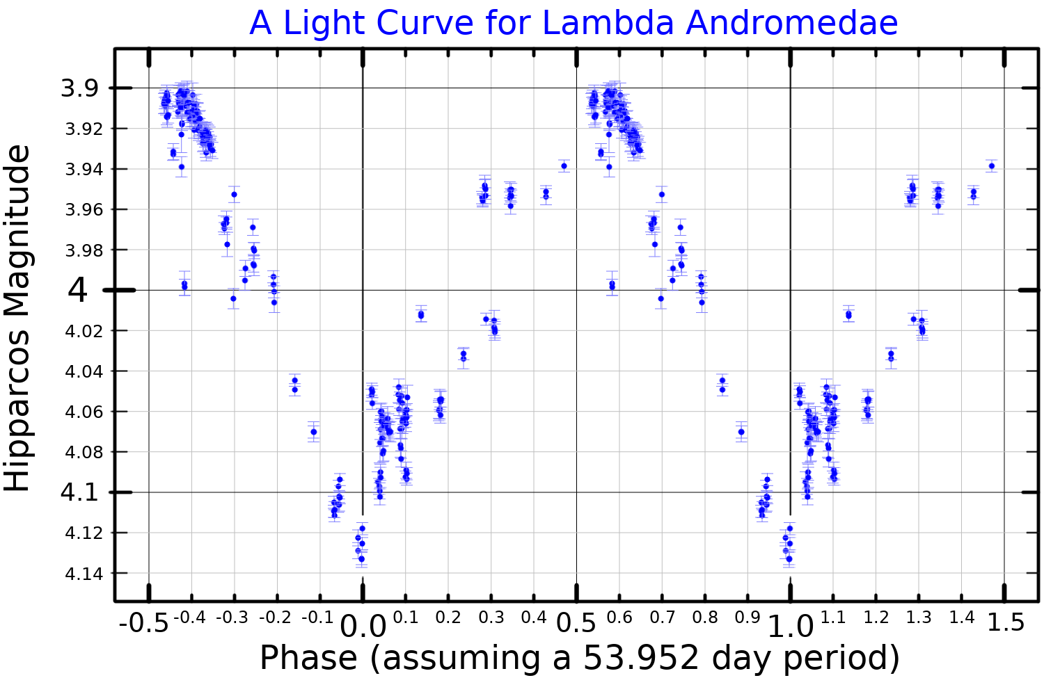 안드로메다자리 람다 별은 1899년 캠벨에 의해 시선 속도 변화가 발견된 것을 계기로 분광 쌍성임이 밝혀졌다. 공전 주기는 20.5212일이며, 주성과 반성의 거리는 약 190만 km이다.
