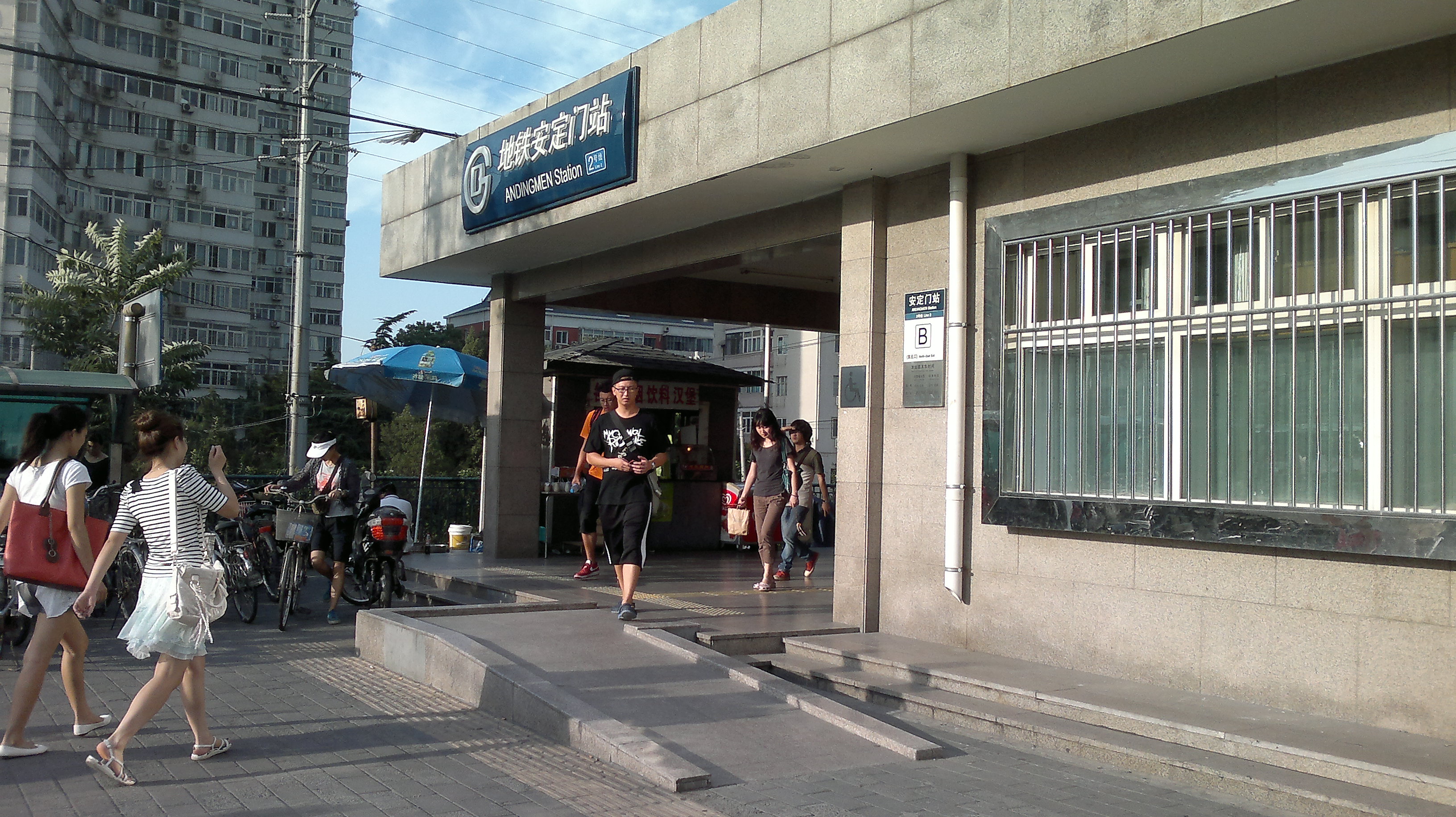 안딩먼역에는 A와 B, 2개의 출구가 있다. A 출구는 이용 가능하다.