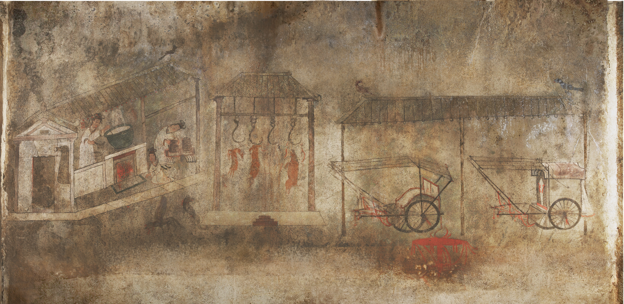 안악 3호분 벽화는 널길, 앞방, 옆방, 뒷방, 회랑 등 고분 내부 여러 공간의 벽과 천장에 그려져 있다. 벽화가 그려진 벽의 총 면적은 81m2, 천장의 면적은 58m2에 달하며, 잘 다듬은 석회암 판석 위에 직접 채색하는 기법(직채)으로 그려졌다.[12] 이 벽화들은 고구려 사람들의 생활 모습과 사회 계층에 대한 중요한 정보를 제공한다.[4]