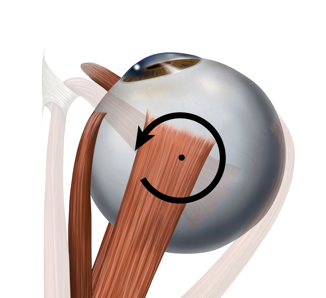 아래빗근은 눈의 가쪽, 위쪽, 바깥쪽 돌림 운동에 관여하며 눈돌림신경의 지배를 받고, 눈의 바깥쪽 돌림을 주요 기능으로 한다. - 안구해부학 - 아래곧은근