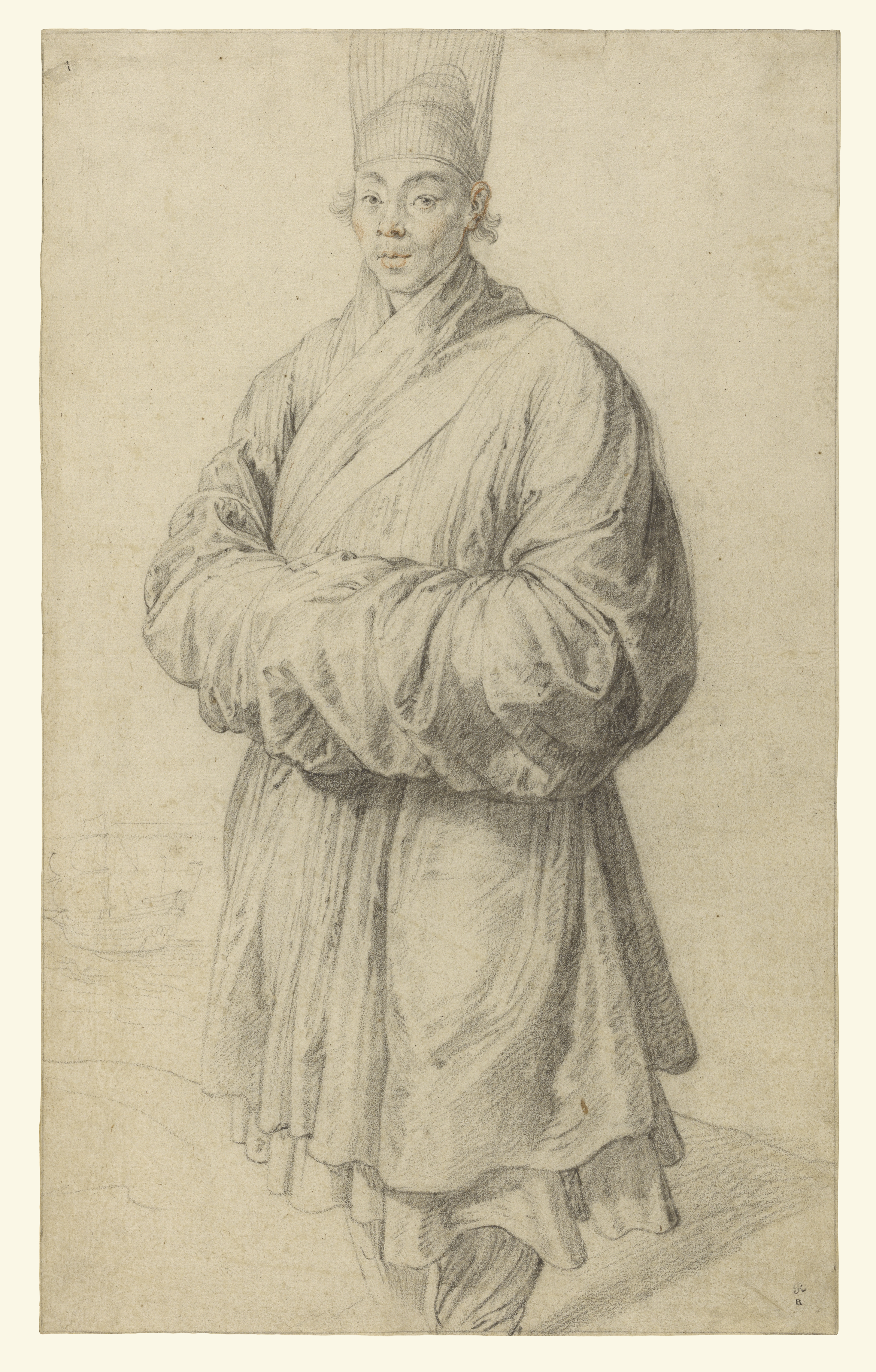 하지만 뚜렷한 이목구비 때문에 조선인이 아닐 것이라는 의견도 있었으며,[9] 1930년대 영국의 한 전문지에 실린 그림 속 모자의 형태가 조선의 그것이라는 기사를 근거로, 조선인이라고 주장하는 의견이 엇갈렸다.[9] 2015년 대한민국의 미술사학자 노성두는 옷이 중국의 것으로 보이며, 1606–1608년의 연대가 초상화가 1617년에 그려졌다는 설과 상충된다고 지적했다.[5][6]