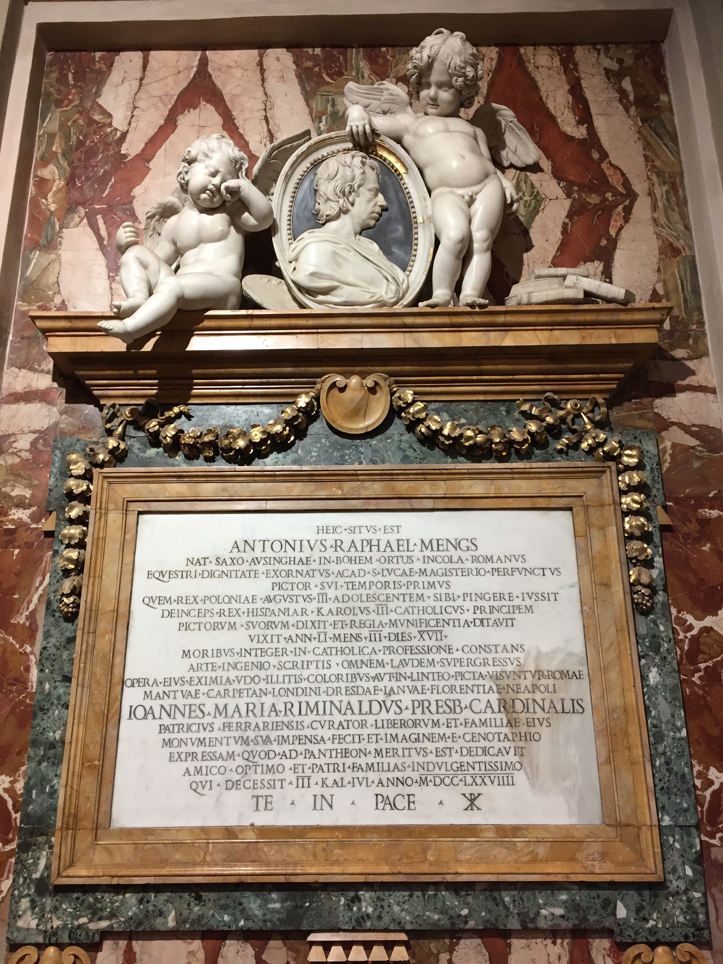 1755년, 로마 교황 클레멘스 13세로부터 Cavalier di speron d'oro 칭호를 받았고, 1759년 나폴리로 여행하여 왕족의 초상화를 그렸다. 나폴리 왕이자 시칠리아 왕이었던 카를로스 3세가 스페인 왕위를 계승하기 위해 마드리드로 이동하자, 멩스는 로마로 돌아와 추기경 알바니 저택(Villa Albani)에 프레스코화를 그렸다. 이 작품은 독일 고전주의의 중요한 작품이 되었다. 1761년 마드리드로 초청받아 조반니 바티스타 티에폴로와 함께 궁전 장식화를 그렸으나, 이 무렵 빈켈만과 대립하여 두 사람의 우정은 끝났다.