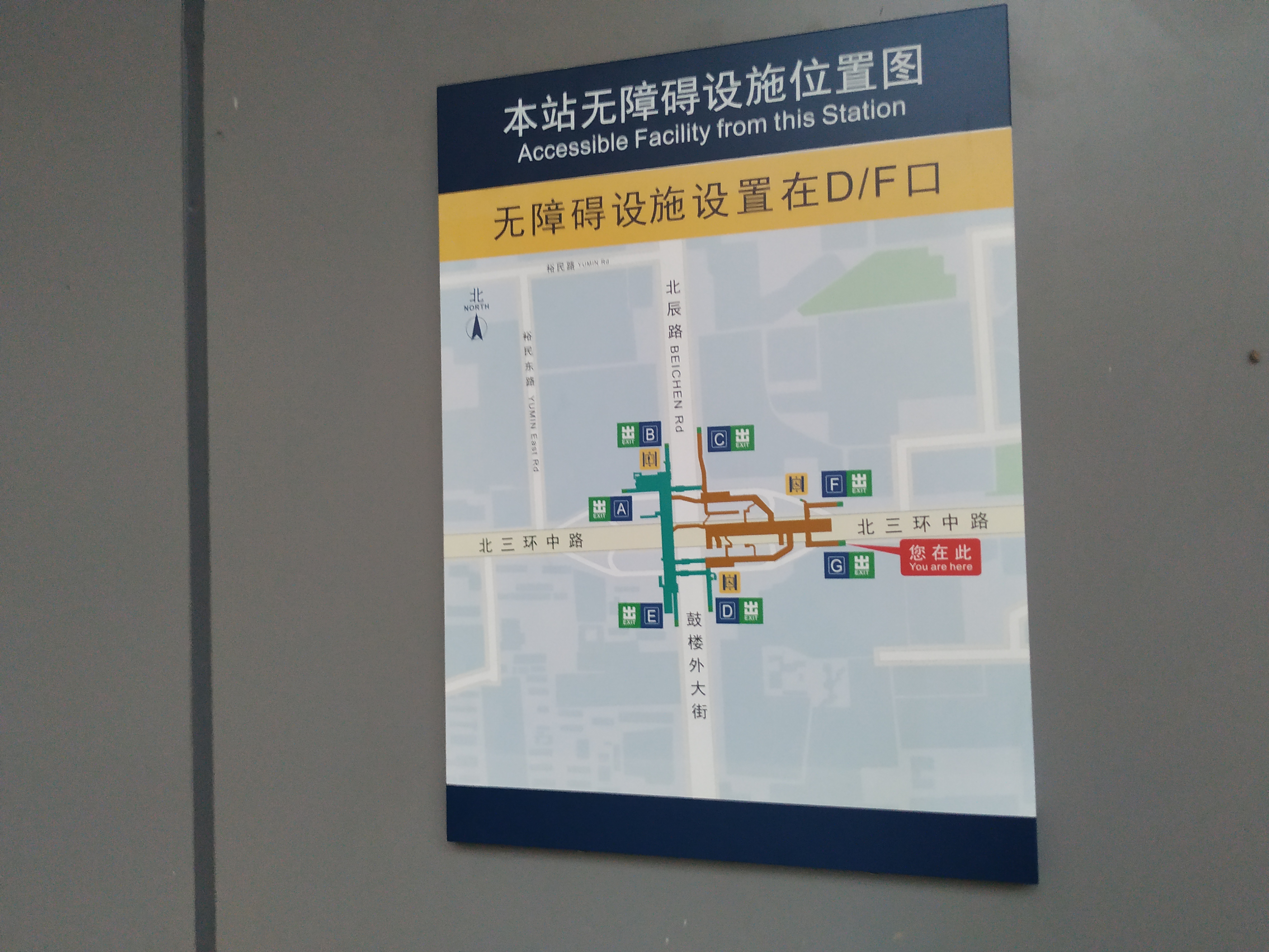 안화교 지역에 있으며, 북3환중로(3환로, 동서 방향)와 베이천로(구러우 외대가, 베이중저우로, 남북 방향)가 교차하는 지점에 남북 방향으로 배치되었다.[3] 역 본체는 안화교 서쪽에 붙어 있다.[4] 역사는 안화교 서쪽에 있으며, 12호선 역은 기존 8호선 역 동쪽에 있다.