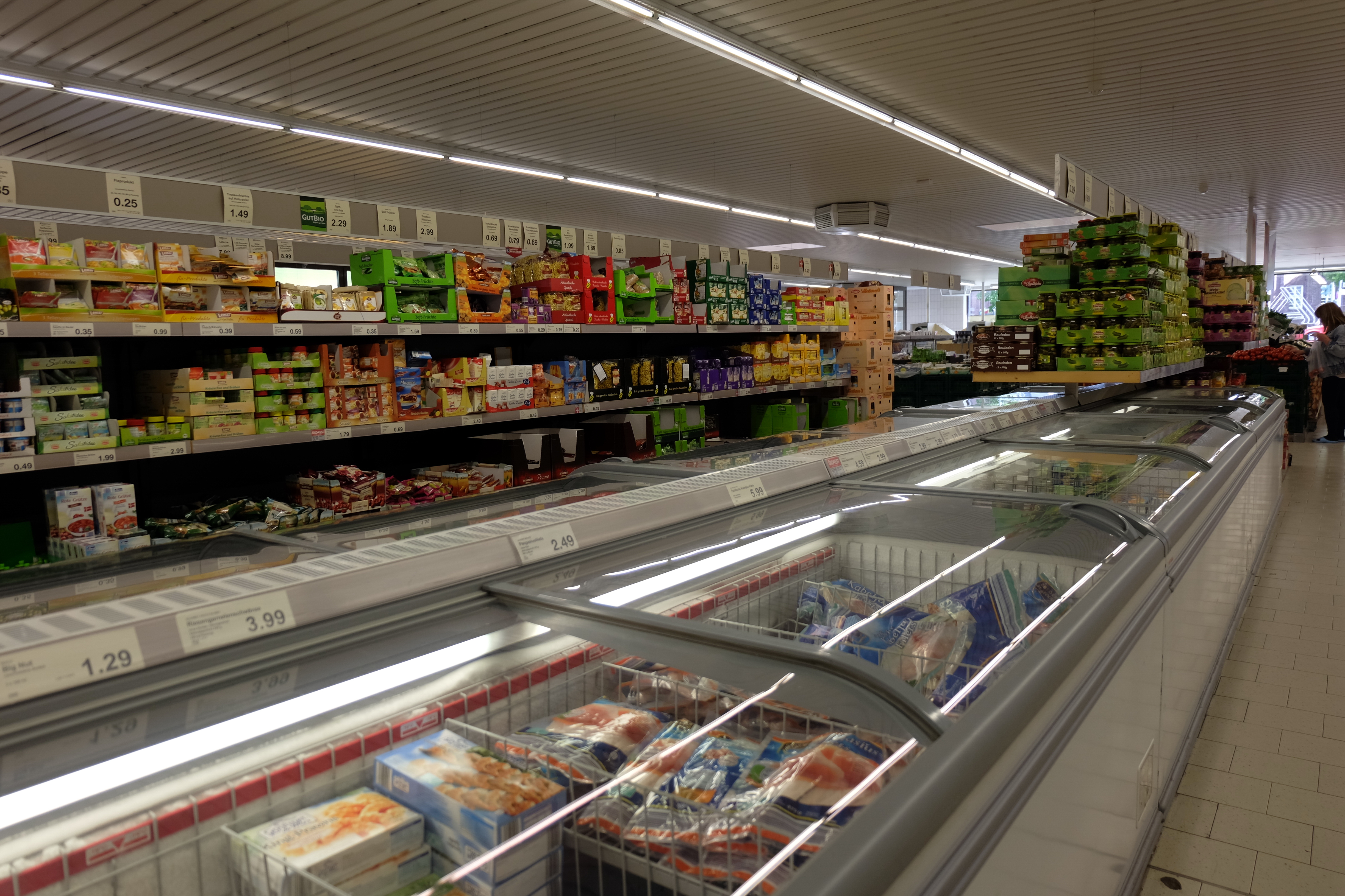 알디(Aldi)는 저가형 매장의 대표적인 예로, 식품, 음료, 화장지, 위생용품 등 저렴한 생필품을 전문적으로 취급한다. 주로 자체 브랜드 제품을 판매하며, 이는 주요 브랜드와 매우 유사하고, 때로는 주요 브랜드에서 생산하기도 한다.[78] 다른 브랜드 제품은 상품당 최대 두 개로 제한된다. 자체 브랜드로는 ''Grandessa, Happy Farms, Millville, Simply Nature, Clancy's,'' 그리고 ''Fit & Active'' 등이 있다.