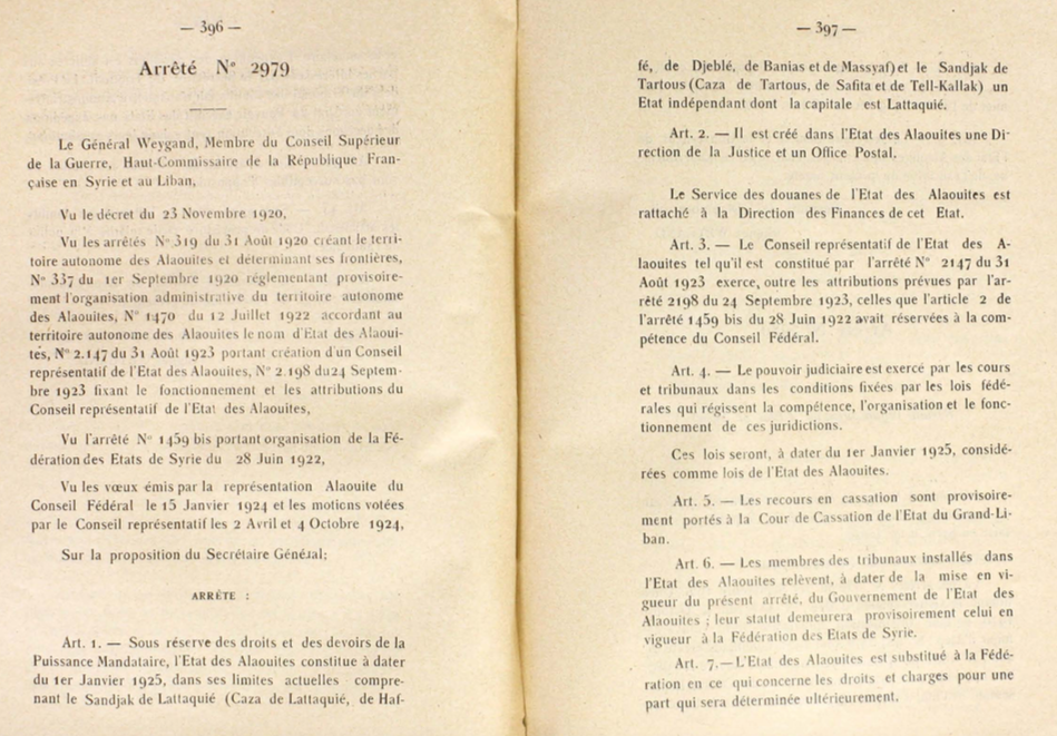 1922년, 프랑스 행정부는 알레포, 다마스쿠스, 그리고 알라위 영토의 대표 위원회로 구성된 선출된 정부를 수립했다.[3]