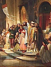 코라도 델 몬페라토 변경백은 북부 이탈리아 출신 귀족으로, 제3차 십자군에서 중요한 참여자 중 한 명이었다.[2] 그는 1190년 11월 24일 혼인을 통해 사실상의 예루살렘의 왕이었지만 그가 죽기 며칠 전인 1192년에서야 공식적으로 왕으로 선출되었다.[2] 그는 또한 1191년부터 몬페라토 후작이기도 했다.[2]
