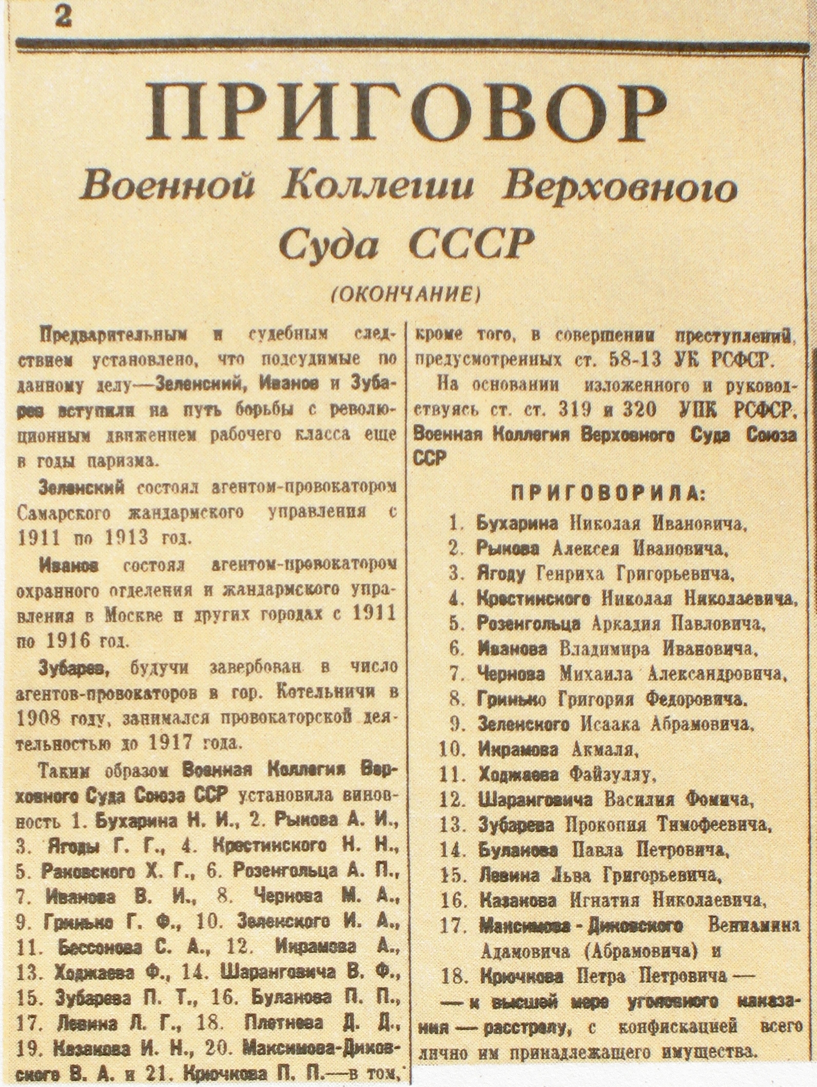 Нина Семёновна Рыкова|니나 세묘노바 리코바ru(결혼 전 성은 마르샤크)는 1937년에 체포되어[9] 1938년 3월 4일에 총살되었다.[11]