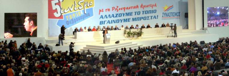 2012년 총선에서 긴축 정책에 대한 비판으로 시리자를 제1야당으로 이끌었으나, 재선거에서 신민주주의당에 패배하여 집권하지 못했다. 2013년 시나피스모스를 급진좌파연합에 흡수하고 대중영합주의적 정책들을 발표했다.