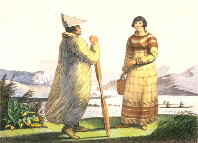1741년 러시아 제국은 덴마크 출신 러시아인 비투스 베링(Vitus Bering)과 러시아인 알렉세이 치리코프(Aleksei Chirikov)를 '성 페트르(Saint Peter)'호와 '성 바울(Saint Paul)'호에 태워 북태평양 탐험 항해를 보냈다.[10] 폭풍으로 두 배가 갈라진 후, 치리코프는 알류산 열도의 동쪽 여러 섬을 발견했고, 베링은 서쪽 여러 섬을 발견했다.[10] 베링은 코만도르스키 제도(Commander Islands)에서 난파되어 사망했는데, 그중 한 섬이 현재 그의 이름을 따 베링섬(Bering Island)으로 불리고 있으며 베링해(Bering Sea)도 그의 이름을 따 명명되었다.[10] 베링의 파티 생존자들은 난파선의 잔해로 만든 배를 타고 캄차카반도(Kamchatka Peninsula)에 도착하여 섬에 모피를 가진 동물이 풍부하다고 보고했다.[10]시베리아 모피 사냥꾼들은 코만도르스키 제도로 몰려들었고, 점차 동쪽으로 알류산 열도를 거쳐 본토로 이동했다. 이러한 방식으로 러시아는 북아메리카 북서부 해안에 발판을 마련했다.[10] 1760년까지 러시아 상인 안드리안 톨스티흐(Andrian Tolstykh)는 아닥섬(Adak Island) 인근에서 상세한 인구 조사를 실시하고 알류트족에게 러시아 시민권을 부여했다.
