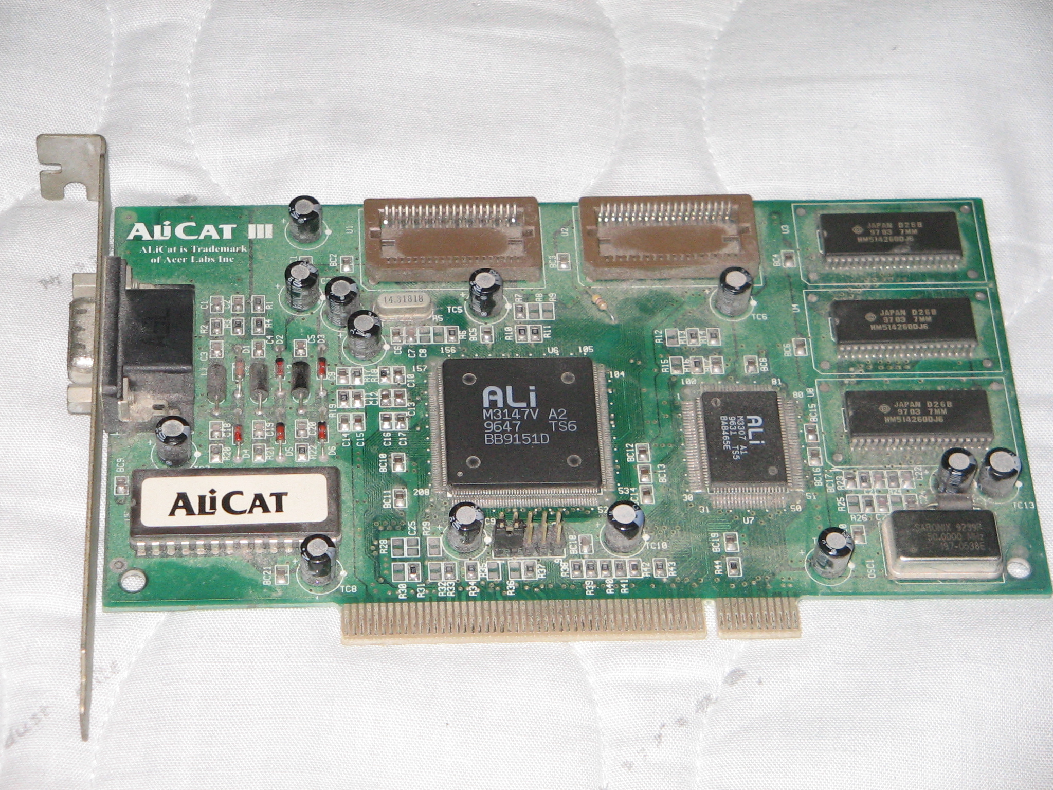 M3141, M3143, M3145A AliCat, M3147V AliCat, M3149, M3151 등 VGA 그래픽 카드를 출시했다. M3145A AliCat은 PCI SVGA 카드이며, 2MB DRAM과 외부 RAMDAC을 가지고 있지만, DDC는 지원하지 않는다. M3147V AliCat은 S3 Trio 64V+와 호환될 가능성이 높다. M3149는 GUI 가속기로 4MB의 메모리를, M3151은 8MB의 메모리를 가지고 있다.3. 3. 비디오