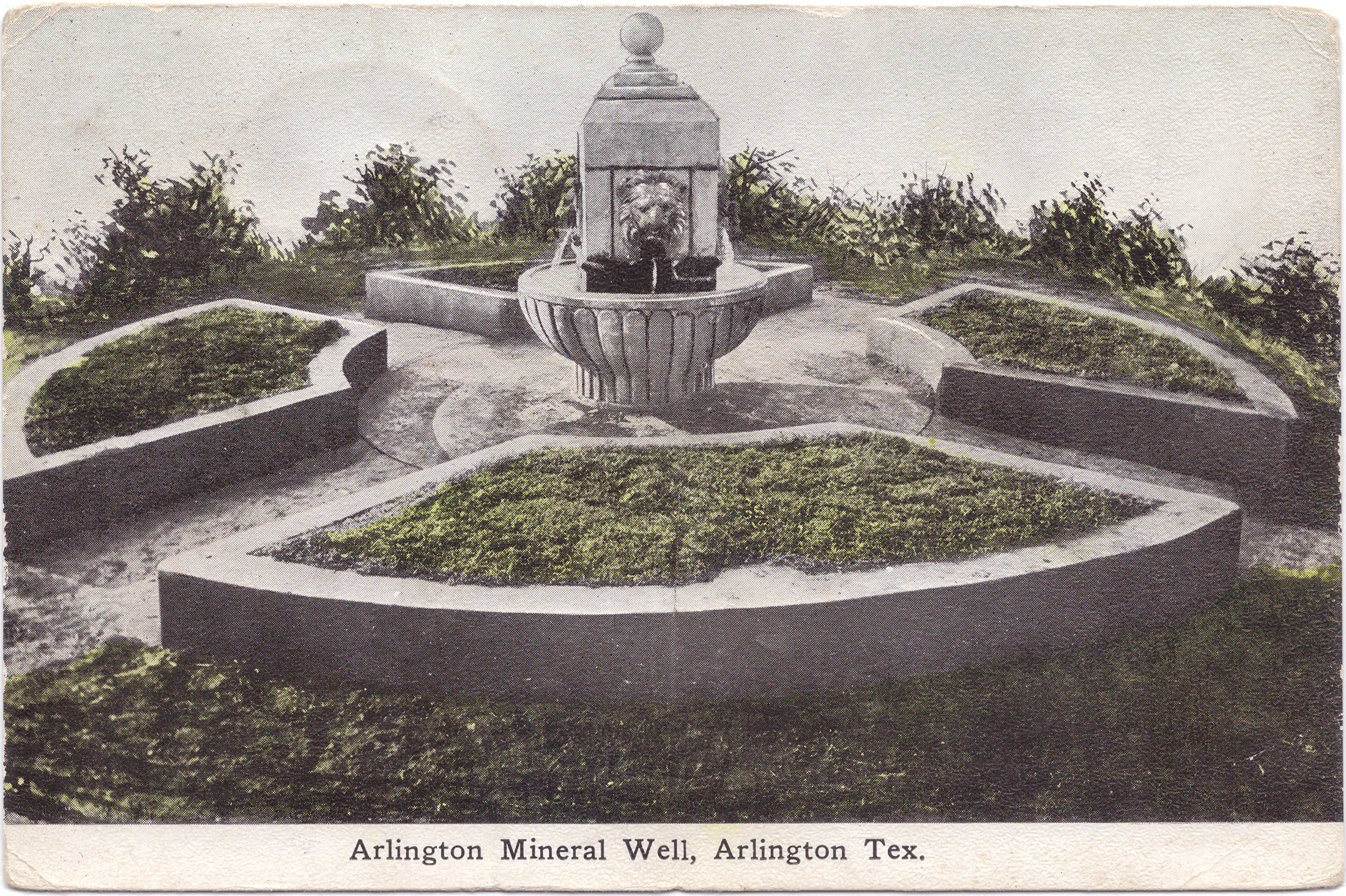 1892년부터 1951년까지 텍사스주 알링턴 시내 한가운데에 정확히 뚫린 광천 우물은 이 도시를 방문하는 주요 이유였다.[11] 이 물은 도시의 브랜드의 일부였으며, 금지령에서 여성의 투표권에 이르기까지 모든 것에 대한 만남의 장소 역할을 했다. 우물은 포장되었다.