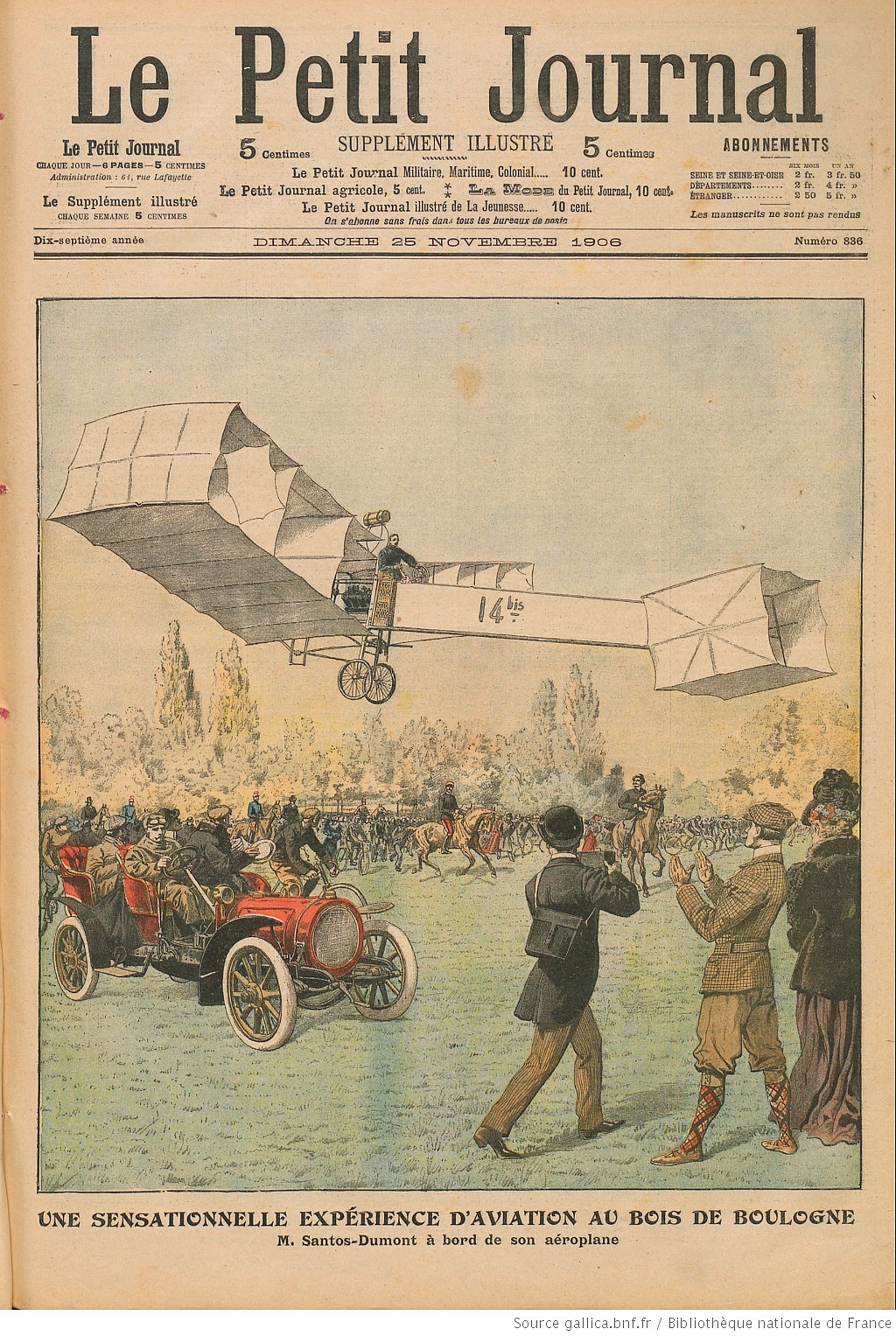 |thumb|left|upright|1901년 7월 13일, 산토스 뒤몽이 비행선 5호로 에펠탑을 돌고 있다]]