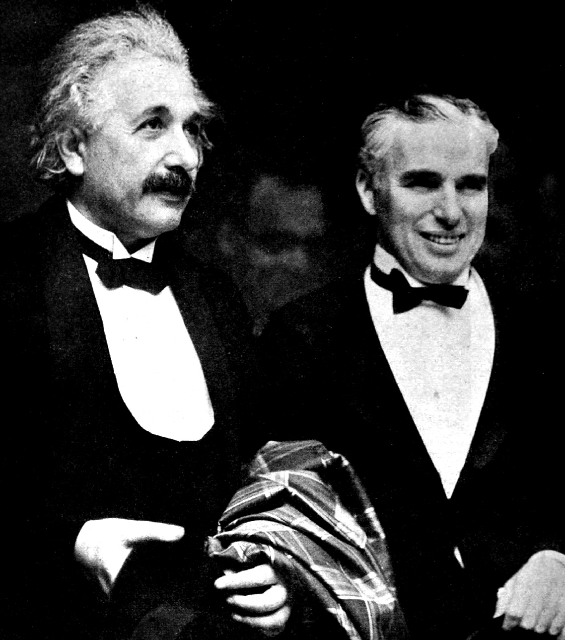 캘리포니아에서 칼텍 총장 로버트 밀리컨을 만났으나, 평화주의자였던 아인슈타인과 달리 밀리컨은 군국주의적 성향을 보여 우정이 어색했다.[295] 아인슈타인은 칼텍 학생들에게 과학이 득보다 실이 많다고 지적했다.[296] 그는 업턴 싱클레어, 찰리 채플린과 친구가 되었고, 채플린은 아인슈타인 부부를 저녁 식사에 초대했다.[297] 채플린의 영화 《시티 라이트》 시사회에 특별 게스트로 초대받았다.[296]
