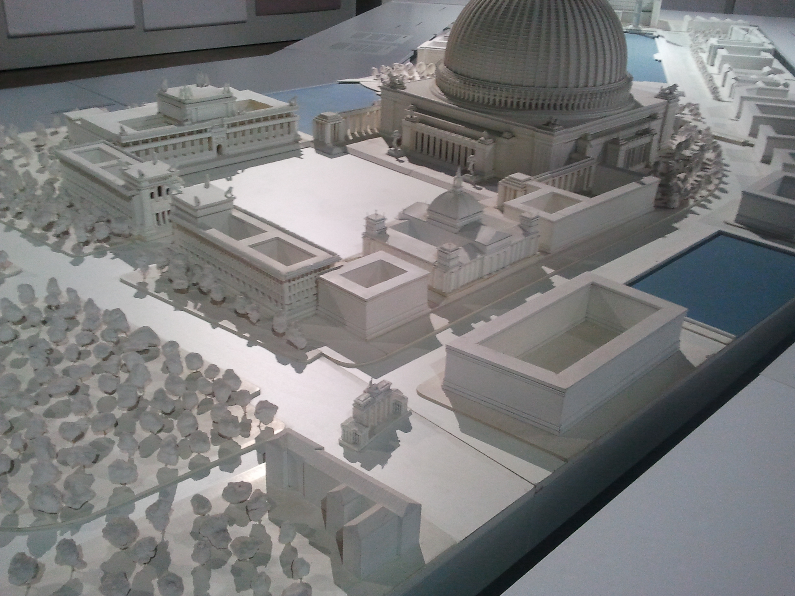 1937년, 히틀러는 슈페어를 '제국수도 총건축 감독관'으로 임명하여 베를린을 '게르마니아'로 개조하는 도시 계획을 맡겼다.[42] 슈페어는 18만 명을 수용할 수 있는 290m 높이의 돔 구조물과 120m 높이의 개선문을 포함한 웅장한 도시 계획을 수립했으나,[43][44] 제2차 세계 대전 발발로 모두 중단되었다.[45]