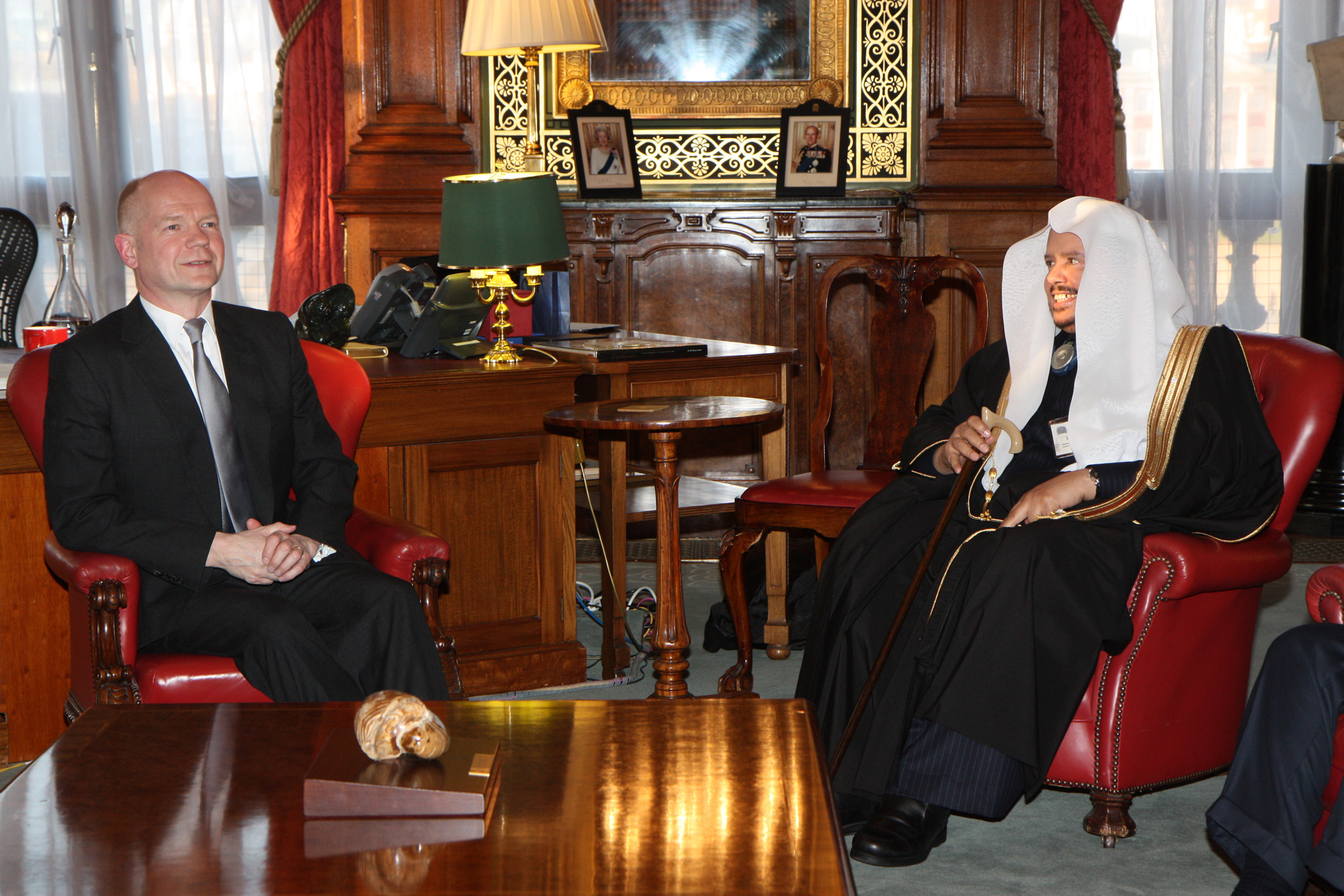 2013년 3월 5일 런던에서 영국의 외무장관 윌리엄 헤이그와 함께 있는 압둘라 빈 무함마드 알 아셰이크