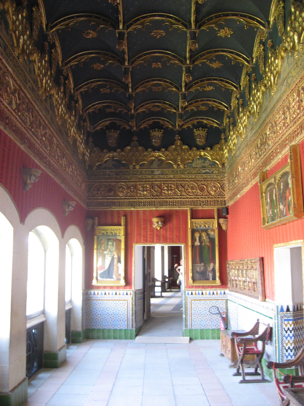 - 갤리 홀: 랭커스터의 캐서린이 1412년에 건설을 의뢰했다.[12] 방 이름은 거꾸로 된 선체 모양의 코퍼 천장에서 유래되었다.[12] 프리즈는 무데하르 양식 석고로 만들어졌으며, 위쪽 비문에는 성찬례와 관련된 기도가, 아래쪽 비문에는 홀에 전시된 작품에 대한 정보가 담겨 있다.[12] 두 개의 스테인드글라스 창문 중 하나는 카스티야의 엔리케 3세와 그의 가족을, 다른 하나는 카스티야의 엔리케 2세와 카스티야의 페드로 1세, 존 2세의 죽음 장면을 묘사하고 있다. 무뇨스 데 파블로스의 그림은 세고비아의 산 미겔 성당에서 카스티야의 이사벨 1세의 대관식을 묘사하고 있다.