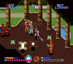 아쿠아 가디언 | 푸른 로브를 걸친 승려와 같은 물의 가디언. 2개의 구형 배리어가 되어 알렌의 주위를 돌며, 그 구체에서 공격탄을 발사한다. 필살검은 "수정류인검"으로, 물을 두른 회전 공격을 한다. |