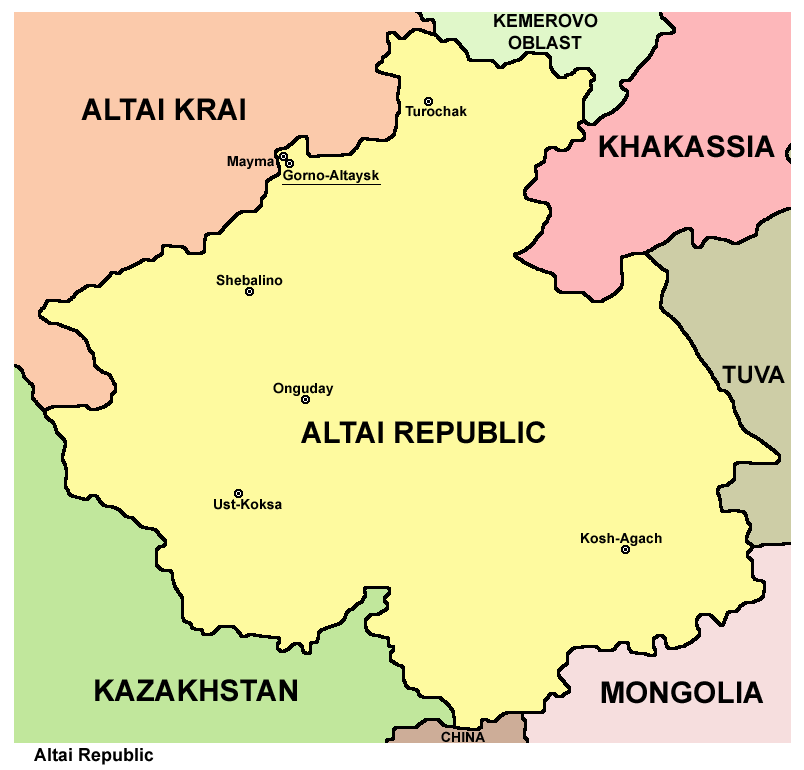 - 접경 지역: 중국, 몽골, 카자흐스탄, 투바 공화국, 하카스 공화국, 알타이 지방, 케메로보주