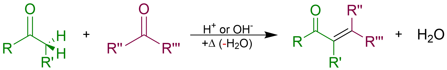 두 카보닐 화합물 사이의 알돌 축합 반응의 일반적인 반응