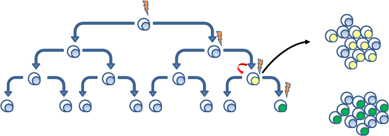 - 증식 능력은 높지만 처음에는 면역원성을 가졌던 일반 종양 세포의 후손들이 면역 감시를 회피하는 기작을 발달시키는 경우