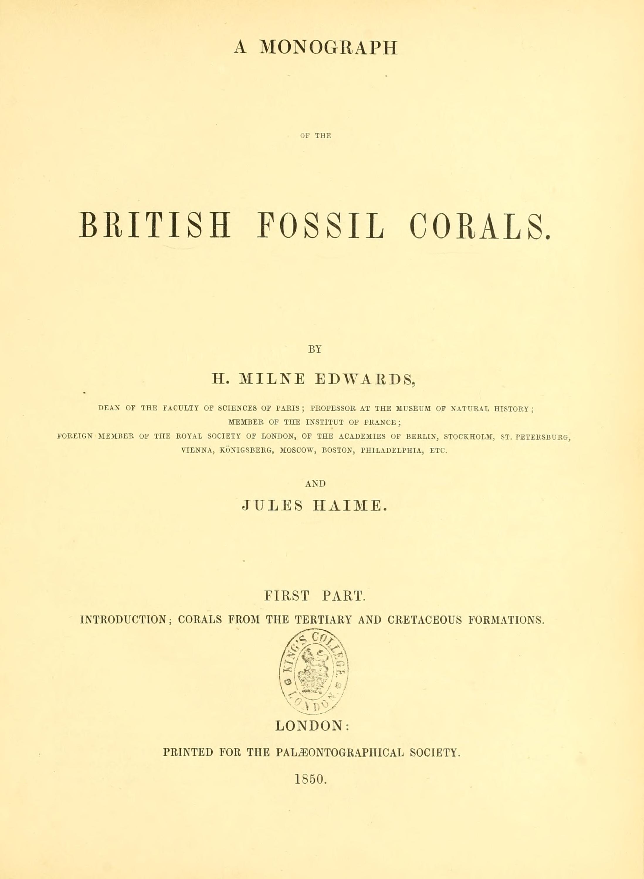 1858–1860년에 출판되었지만 여러 해 전에 시작된 ''Histoire naturelle des coralliaires프랑스어''는 산호 연구에 중요한 기여를 하였다.