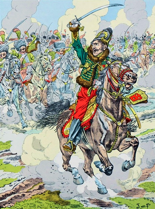 라살 장군이 기병 돌격을 이끄는 모습