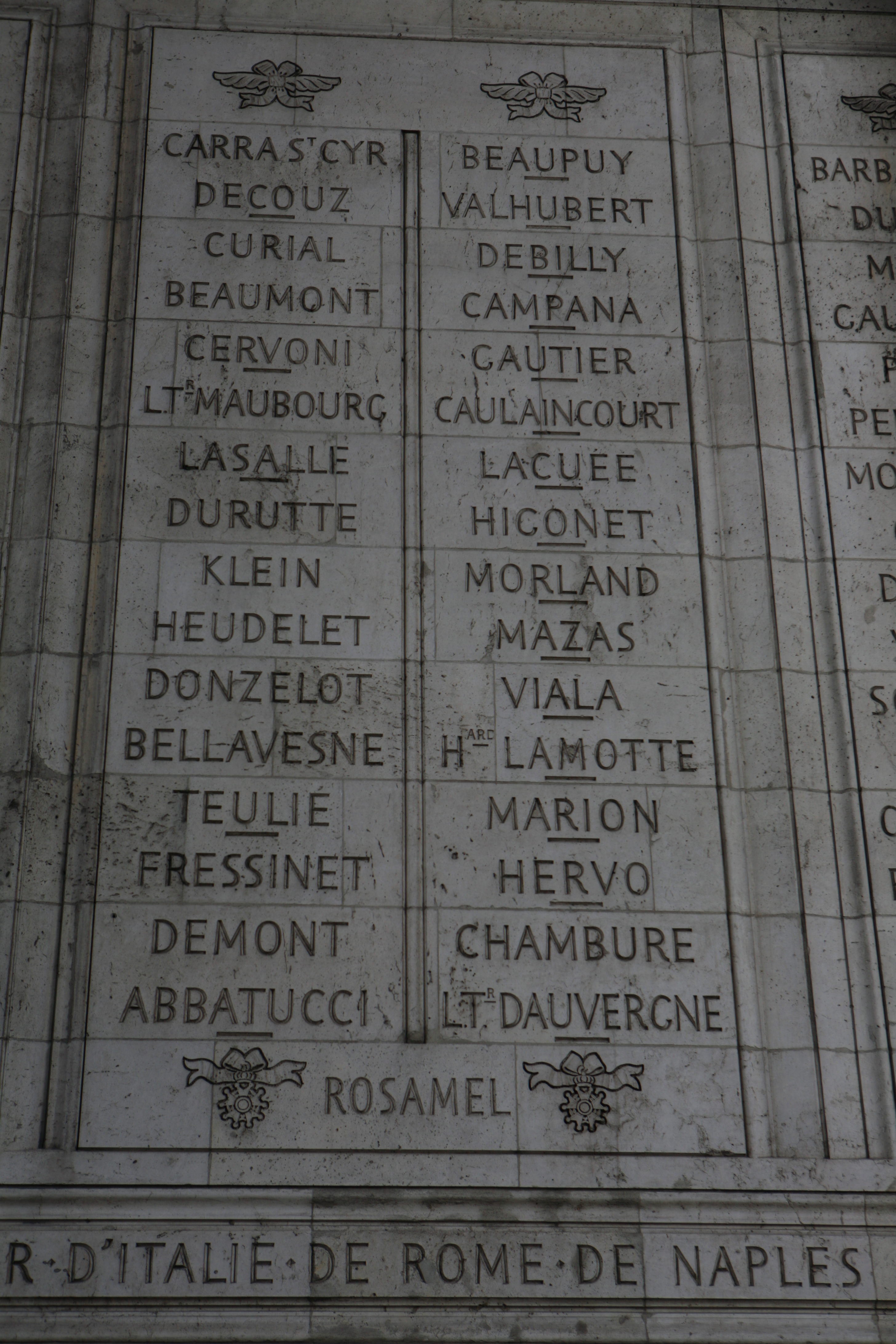 개선문 아래 새겨진 이름 : 동쪽 기둥 17번째와 18번째